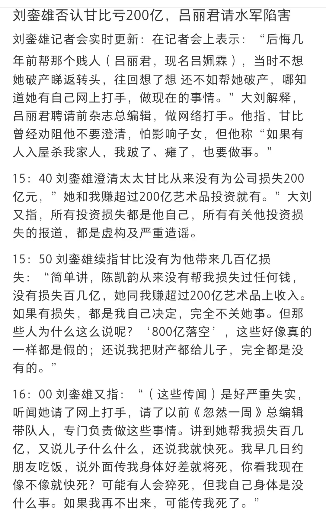 甘比真的好会激将法啊。阻止刘銮雄开澄清会的原因是怕影响孩子,这里说的孩子可能是吕丽君的子女刘秀盈,刘子锋了。某种程度上来说,当甘比自己被谣言伤害的时候,她在刘銮雄面前的形象是自己已经被伤害了,为了刘秀盈刘子锋,就不要为难吕丽君了。 刘銮雄一看妻子那么懂事,肯定受不了自己总是为了孩子牺牲甘比的。这么一看,甘比劝阻刘銮雄的理由,其实是让刘銮雄当众二选一。要么选择跟甘比一起生活,要么选择跟刘銮雄不亲的刘秀盈,刘子锋,让甘比受委屈。 所以不得不说有些男人看起来意气风发,看起来很重感情,但感觉真的是被人坐局了一样呢。
