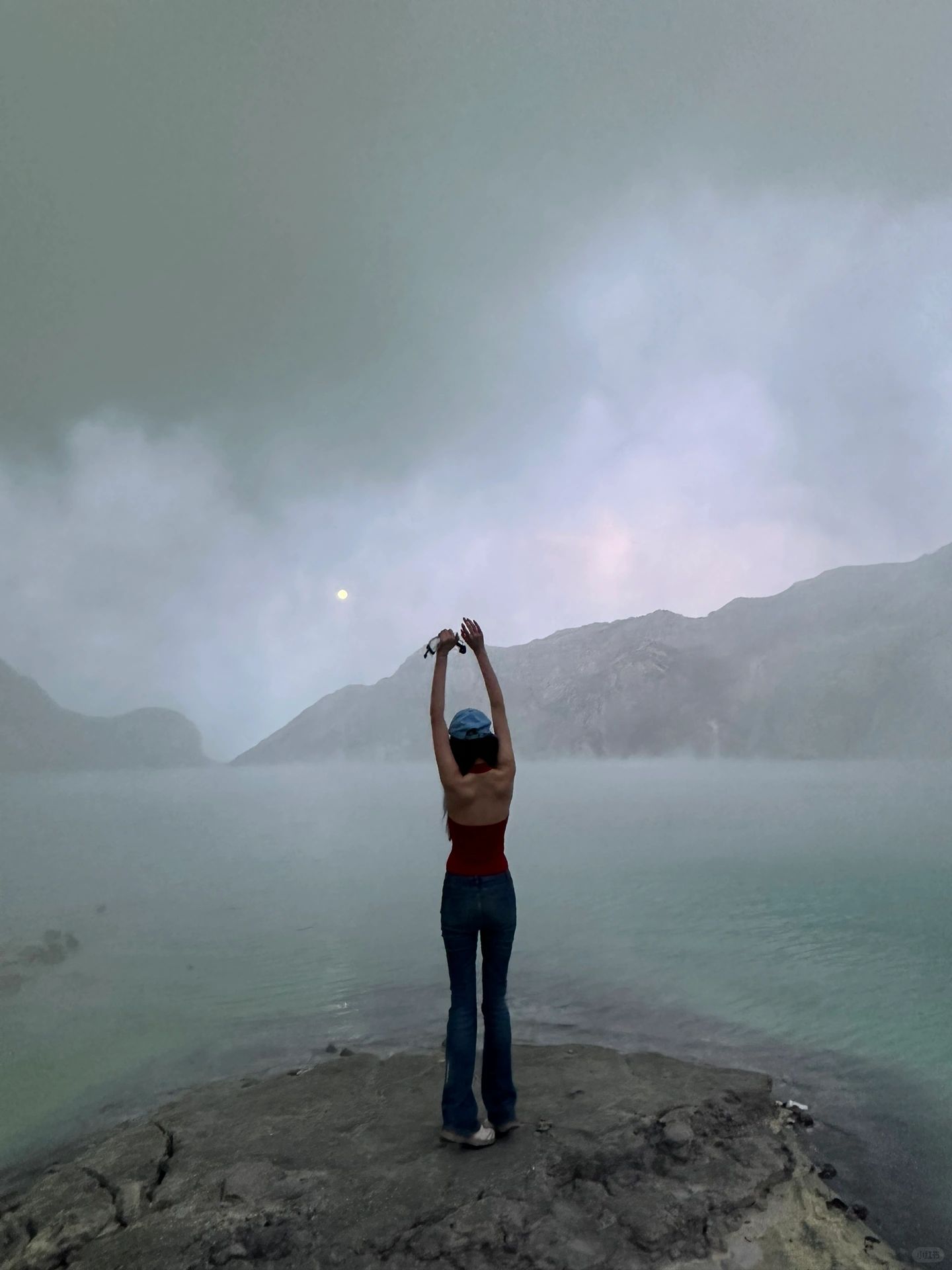 今日日记 凌晨一点出发去ijen火山🌋脚下 活生生爬上去的谁懂 只有爬过的人才知道有多多多多多多累 看到蓝火被硫磺烟熏的根本就是一整个窒息 天亮些的时候就觉得哇这也太美了8不虚此行了 还跟朋友去更远一点的这个树这拍了照 感觉自己体力尊嘟杠杠好👍嘿嘿 直到下山的时候才知道自己居然爬了这么远的路 我也太棒了吧哈哈 btw现在的我已经坐5个小时车来到了另一个地方的酒店的床上美美躺着 我还录了vlog记录了今天的特种兵尽情期待一下吧😉