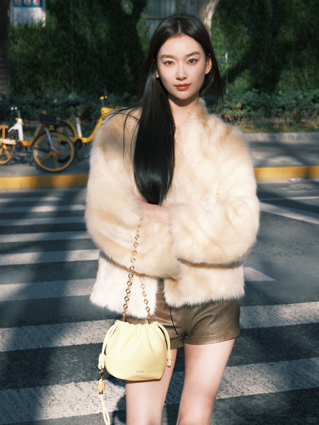 在冬日午后的街头 捕捉阳光吸收能量 迎接即将到来的新年🧨 - 就算是冬天也要做个辣妹 皮草➕皮裤的搭配就是最佳选择啦 太喜欢这样酷酷的松弛感了 还特意背上了我的新包包,来自Loewe flamenco 最新的【玉系列】福袋包包 奶乎乎的糖黄色令人感到温暖 可爱的福袋造型还搭配同色系幸运玉石 寓意着新年好运连连 金属链条与纳帕羊皮的碰撞 温柔中带一丝不羁,氛围感拉满,单肩手拎都能轻松驾驭 - 新年背上新包包 做一个时髦精致的Lucky Girl🌟