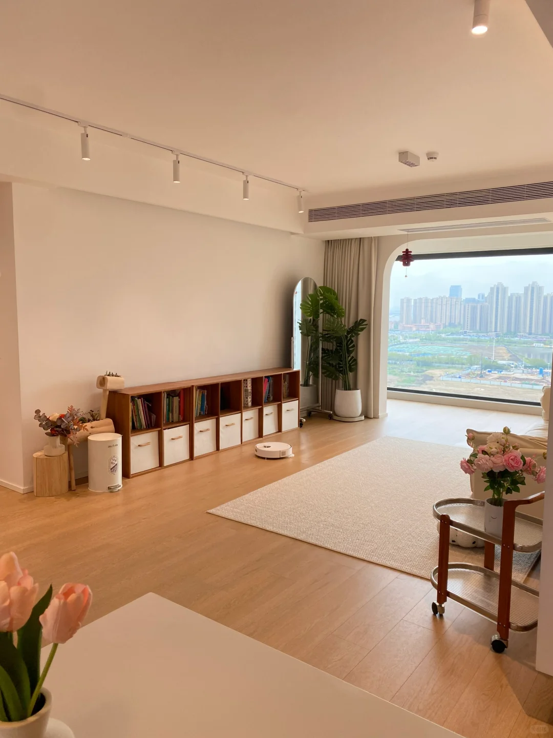 敲掉了阳台的推拉门,封了落地窗,视觉上更显开阔了,整体采光也更好了。