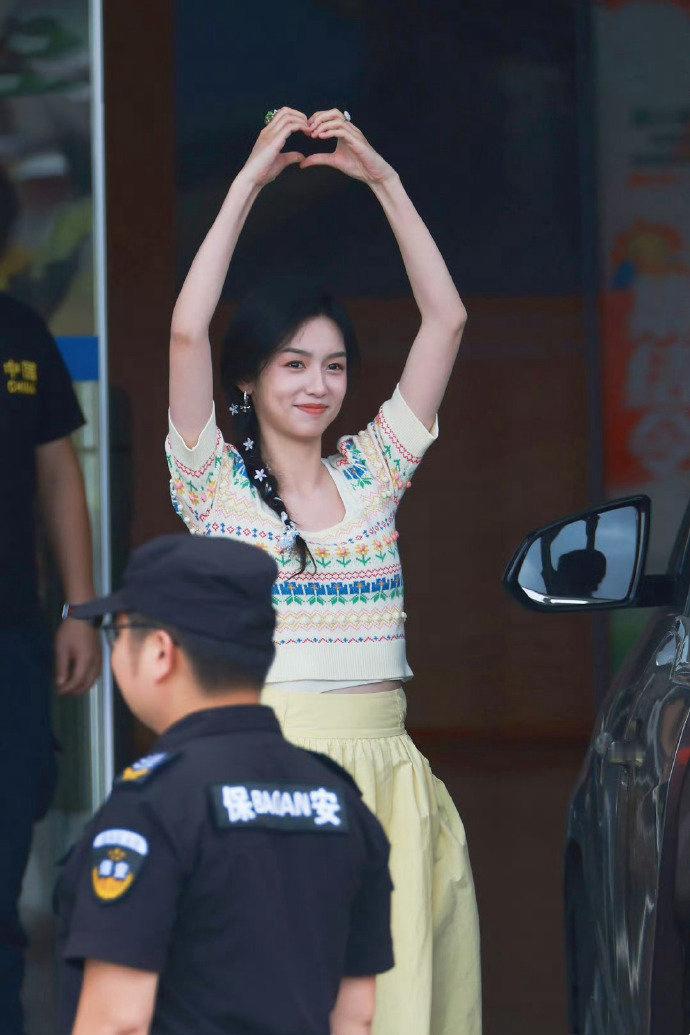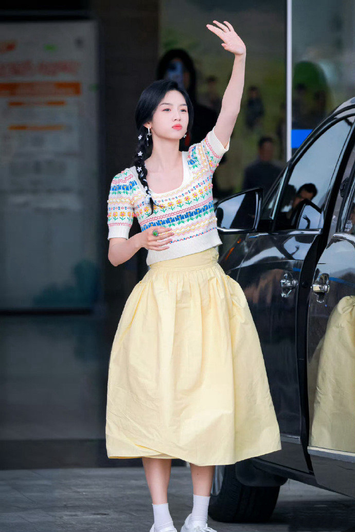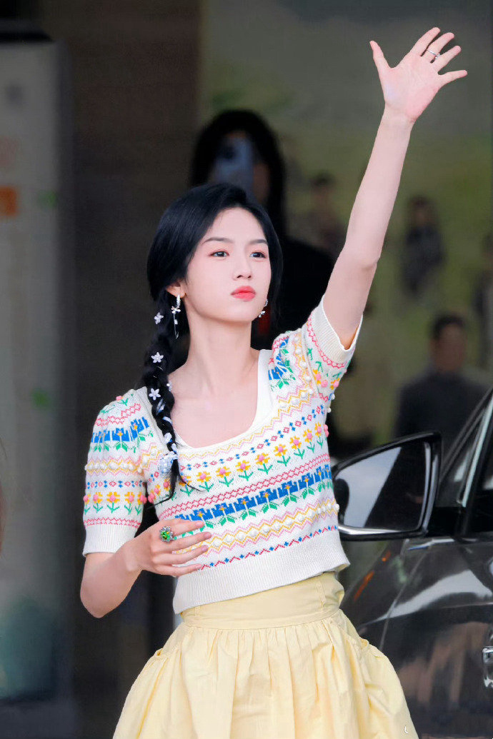 黄裙编发好元气好夏日,和粉丝嘟嘴比心好可爱啊!是甜甜的小公主一枚[爱你]