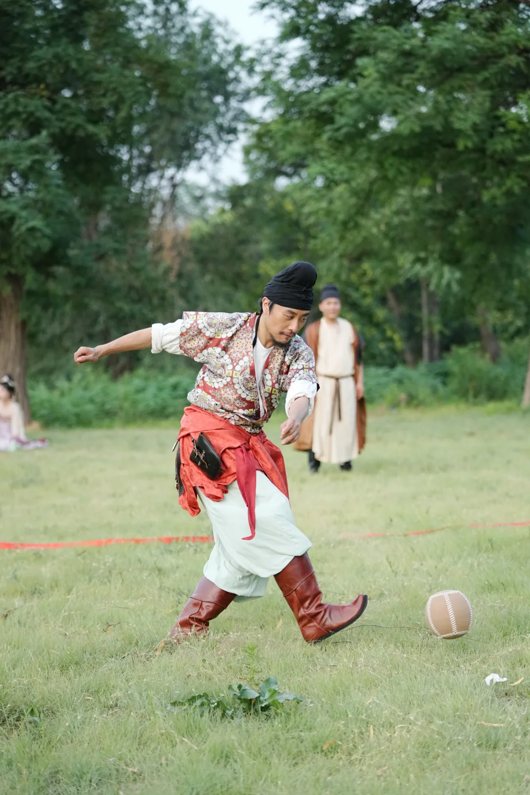 蹴鞠花阴外,轻盈复悍骁。个中年少者,酷似霍嫖姚。