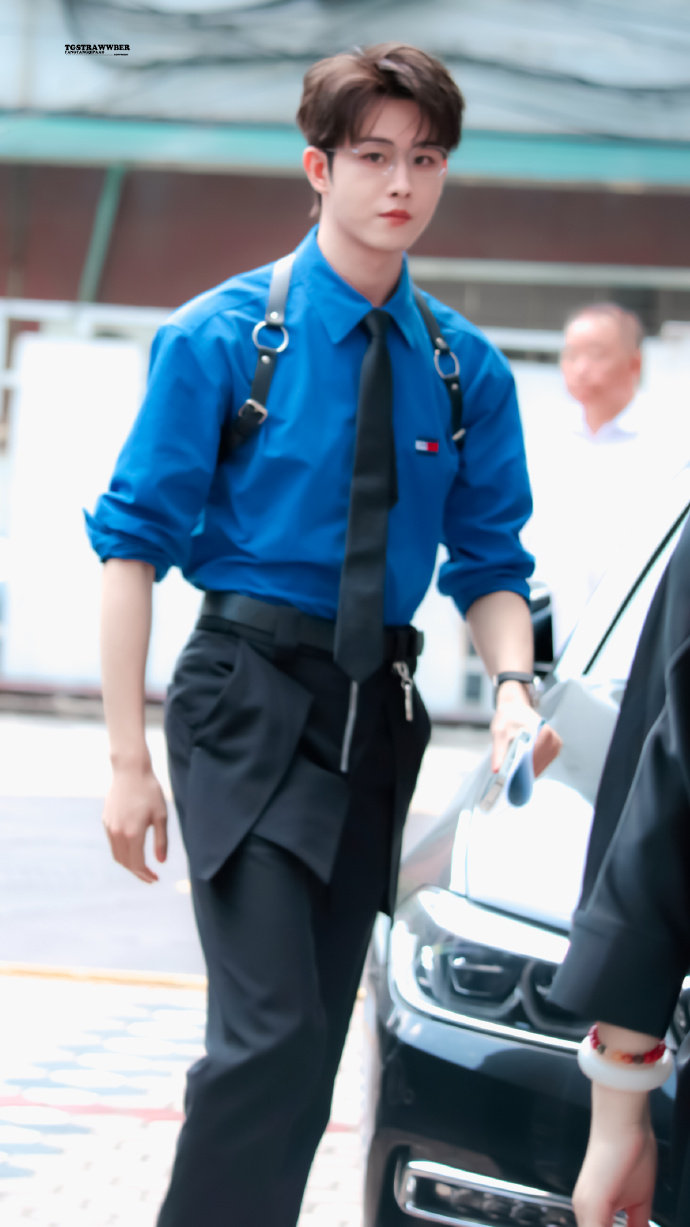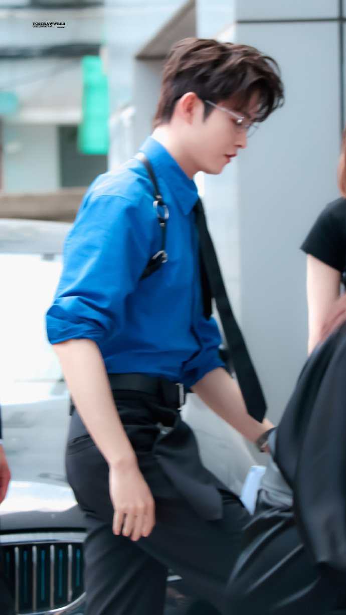田嘉瑞今日品牌活动上班路透!银丝眼镜+蓝衬衫+背带裤的搭配真的仙品!