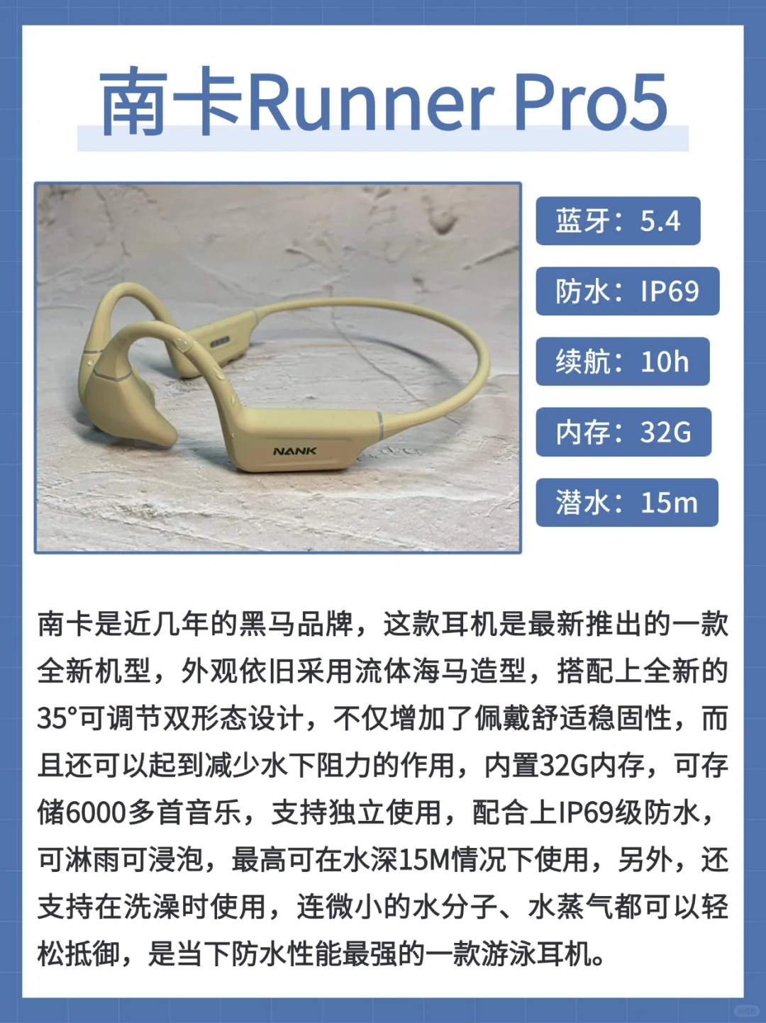 之前选购游泳耳机的时候,我自己也做过非常多的攻略 今天就给大家分享一下 总结成了这篇游泳耳机测评 还在纠结选择哪款游泳耳机的姐妹们可以码住慢慢看~ 游泳耳机、骨传导蓝牙耳机、南卡耳机、游泳耳机平价、骨传导耳机游泳、游泳耳机推荐、