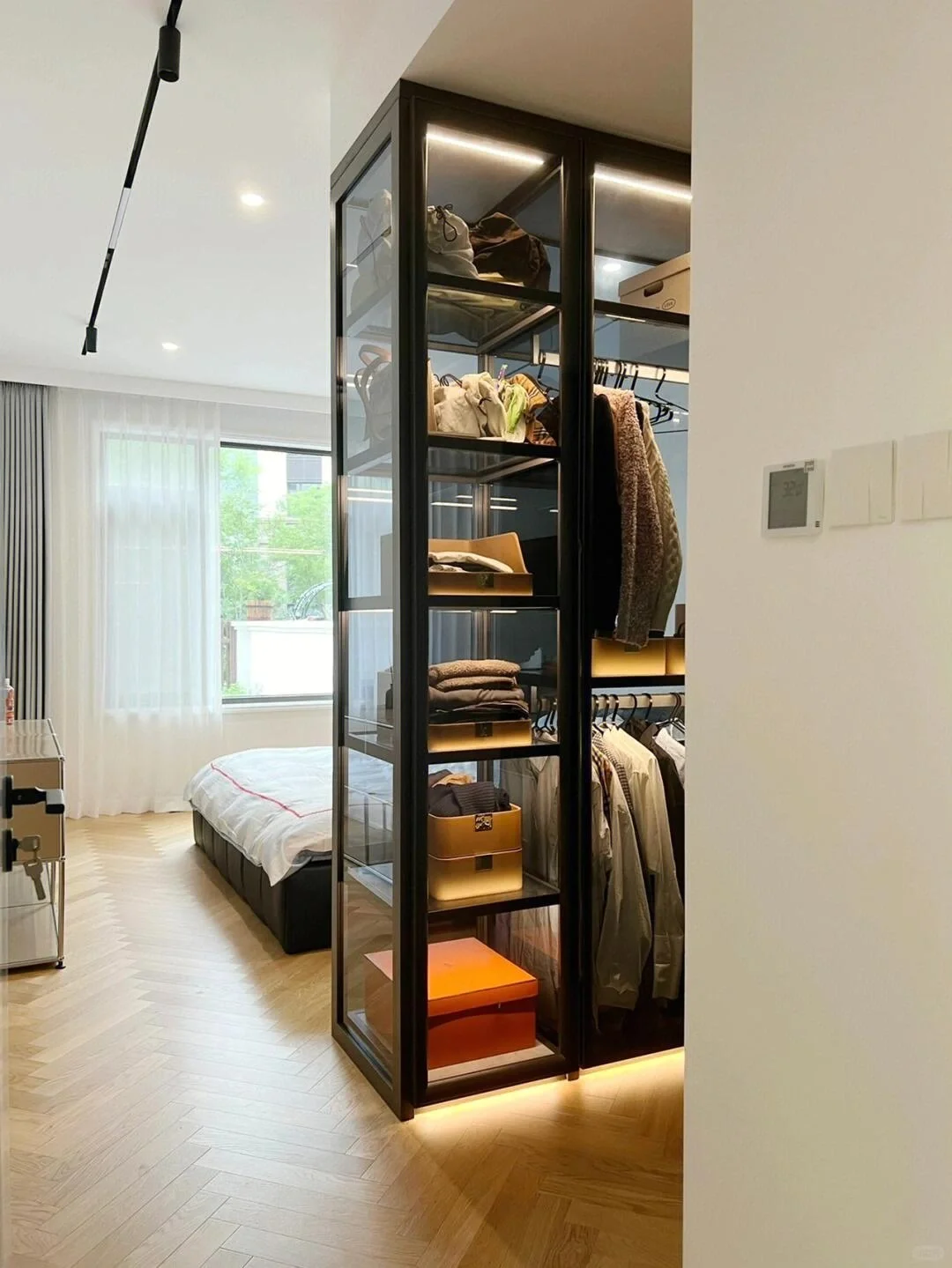 路过的发一张你的衣帽间 沙特裝修 阿联酋裝修 白色玻璃門定制 全屋定制工厂高定后烤漆玻璃门 开灯是玻璃关燈是镜子 高定后烤漆 中东全屋定制 阿联酋全屋定制 沙特全屋定製