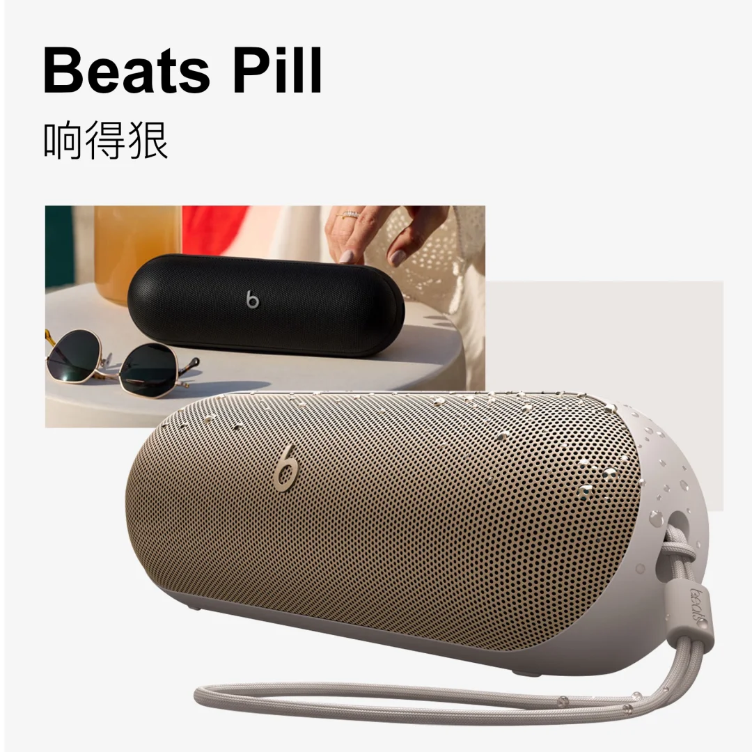 拥有更大的定制赛道式低音单元。新一代的钕磁铁可推动更多空气量,并让电机动力提升28%,IP67级别防尘抗水性能,Pill扬声器还可用作免提电话,24小时超长续航,以及更多播放模式(派对时刻/立体环绕)。