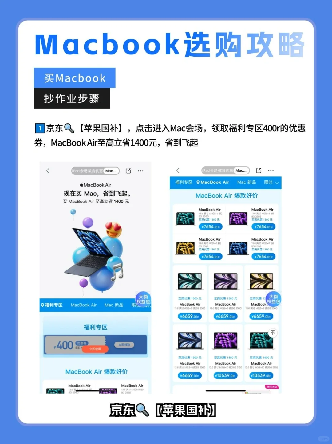 1⃣京东🔍【苹果国补】,进入Mac会场,MacBook Air至高立省1400元,省到飞起