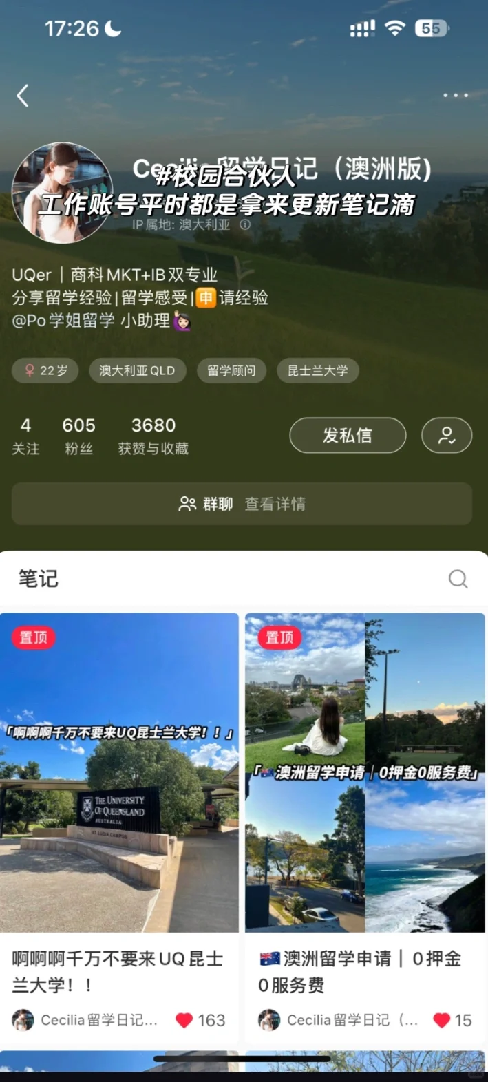 校园合伙人主要是负责分享个人在学校的生活和经验。让更多人了解咱们UQ这个学校🏫,作为校园合伙人的在分享生活经验的同时,还需要分享UQ的校园体验,专业和中介等等…你就是UQ的校园代言人!