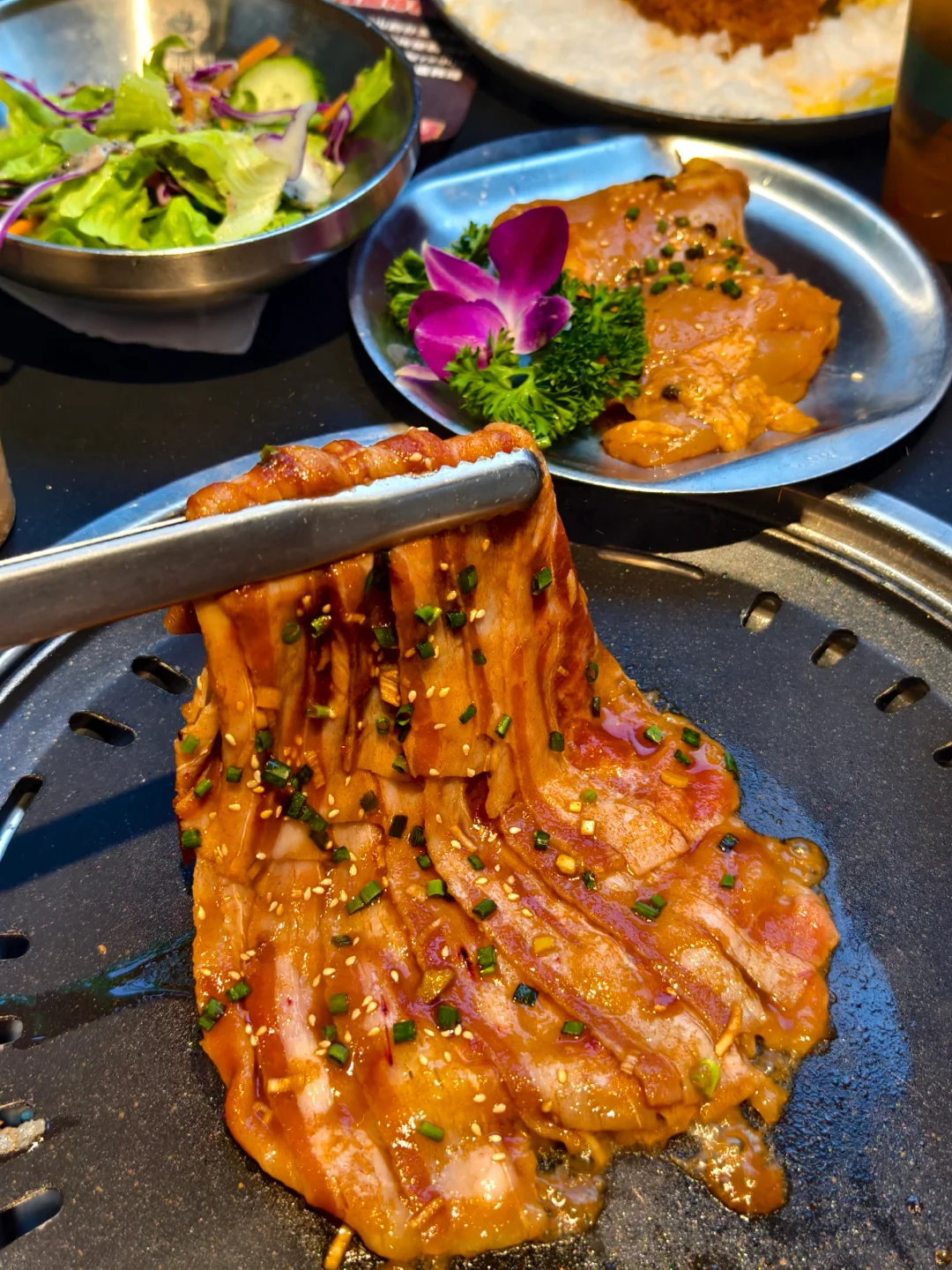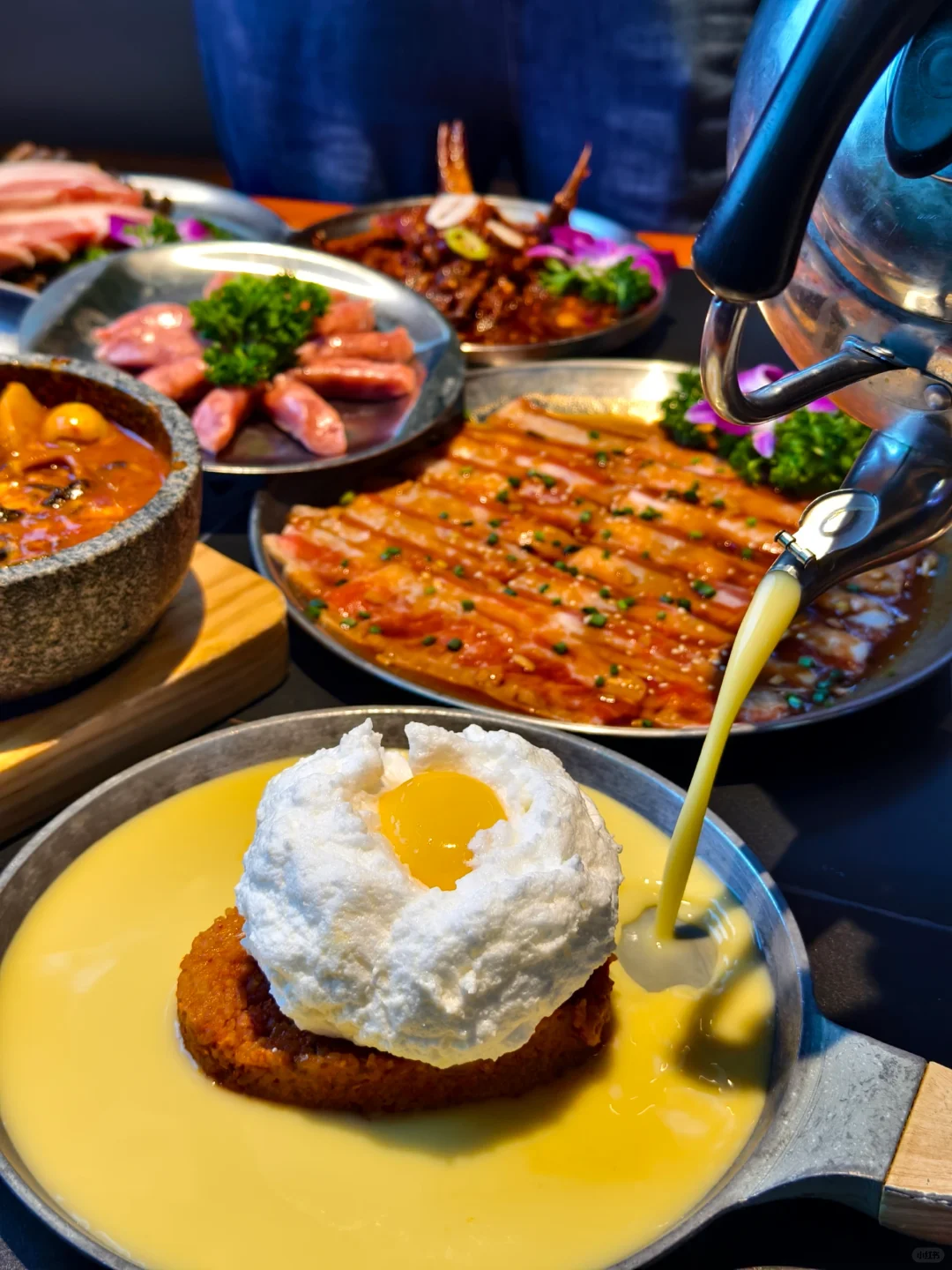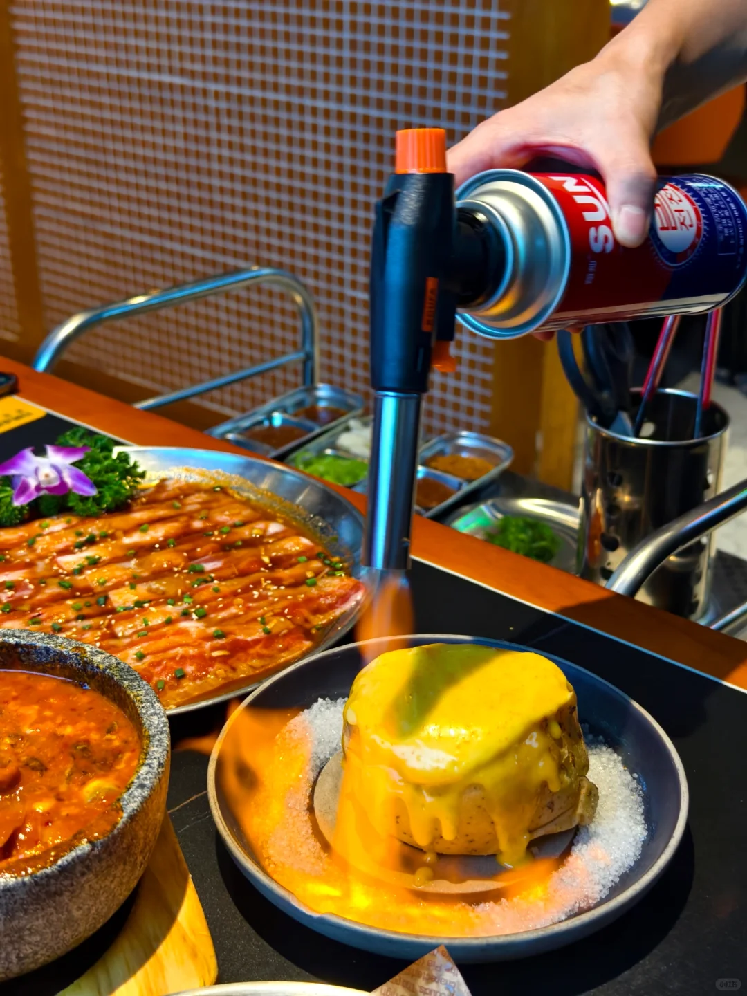 终于❗️❗️❗️ 我也打卡了 hin 火 hin 好吃🉐韩餐惹[皱眉R][皱眉R][皱眉R] ✅韩式生腌辣酱蟹:尊嘟很新奇🉐口感!像果冻滑溜溜,又比较…像 芋泥块黏糊糊🉐,酸甜辣🉐调味,还可以拌饭吃,卷在搭配的海苔片里,层次丰富,真的很猎奇啊[偷笑R][偷笑R][偷笑R] ✅明太子焗土豆🥔:啊❗️❗️❗️今日top ❗️芝士味贼浓郁,里面是超级细腻🉐土豆泥,咸甜永动机[赞R][赞R][赞R] ✅冻梨绝绝汁:终于也是吃到了传说中的冻梨了,hhh 酸酸甜甜,很好喝[色色R][色色R][色色R]