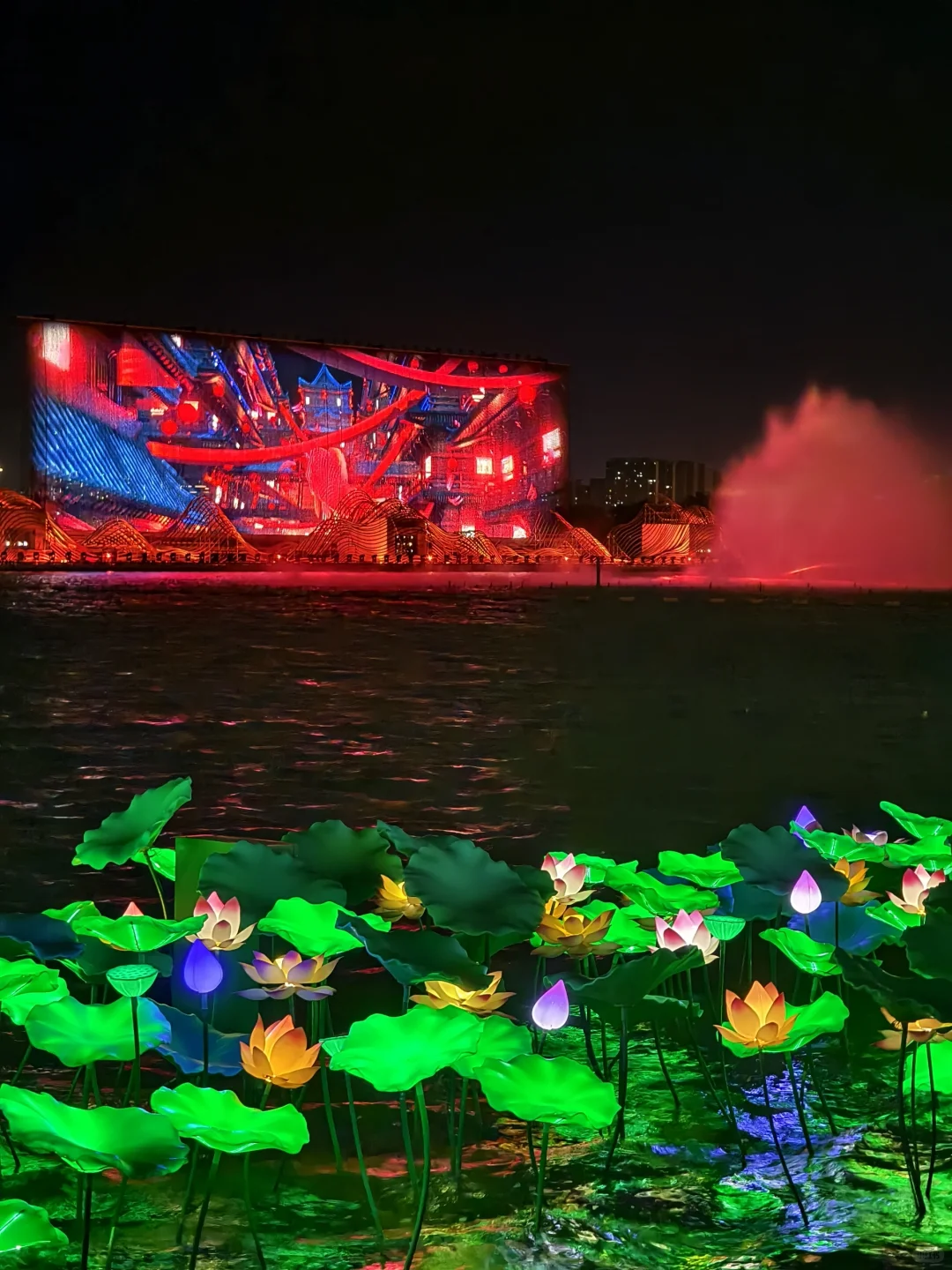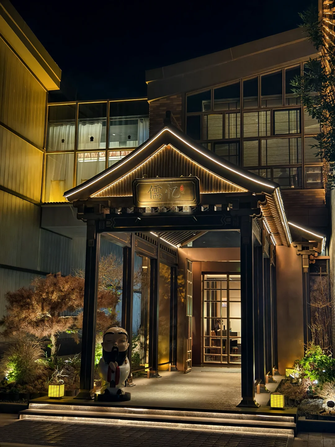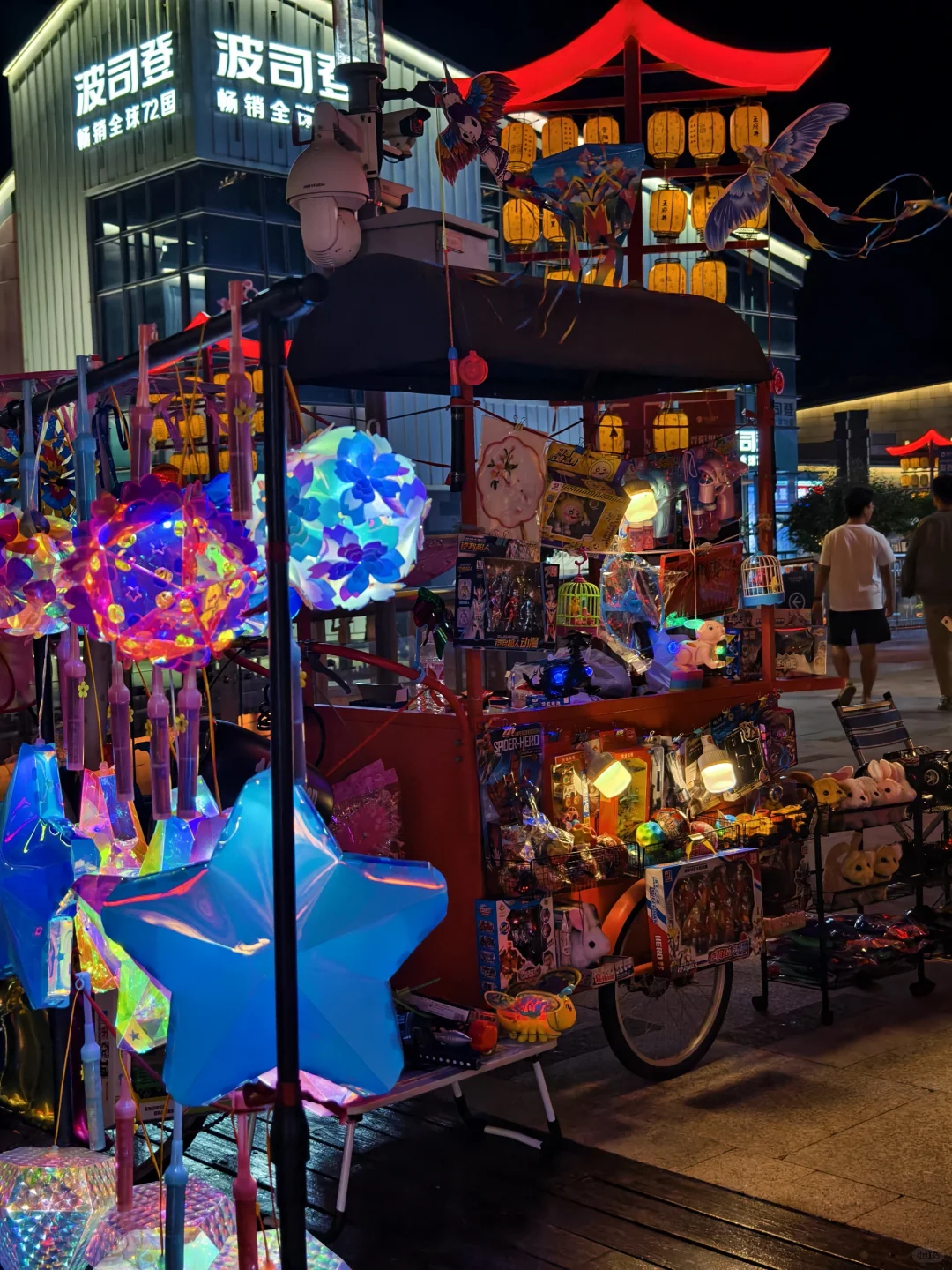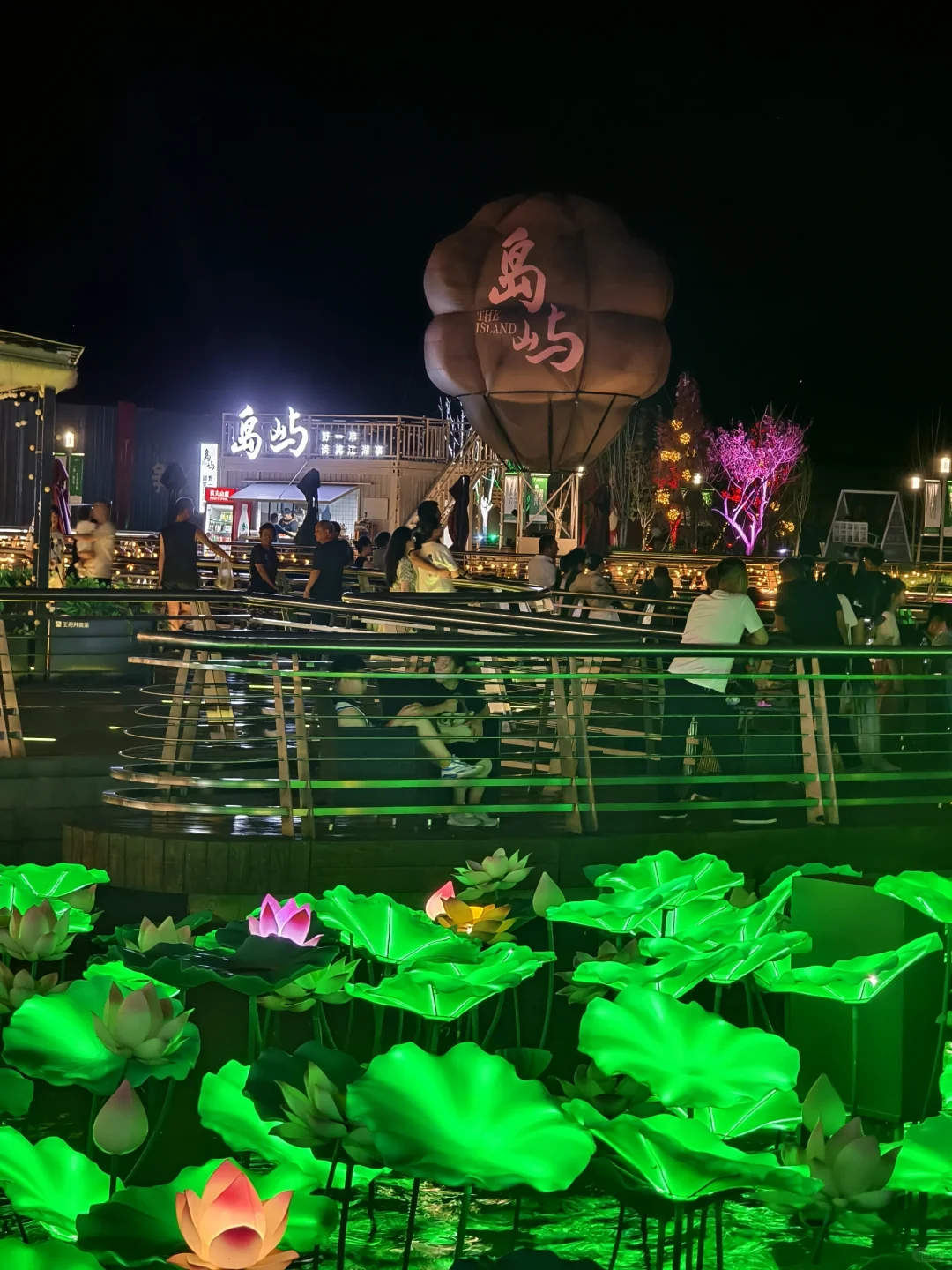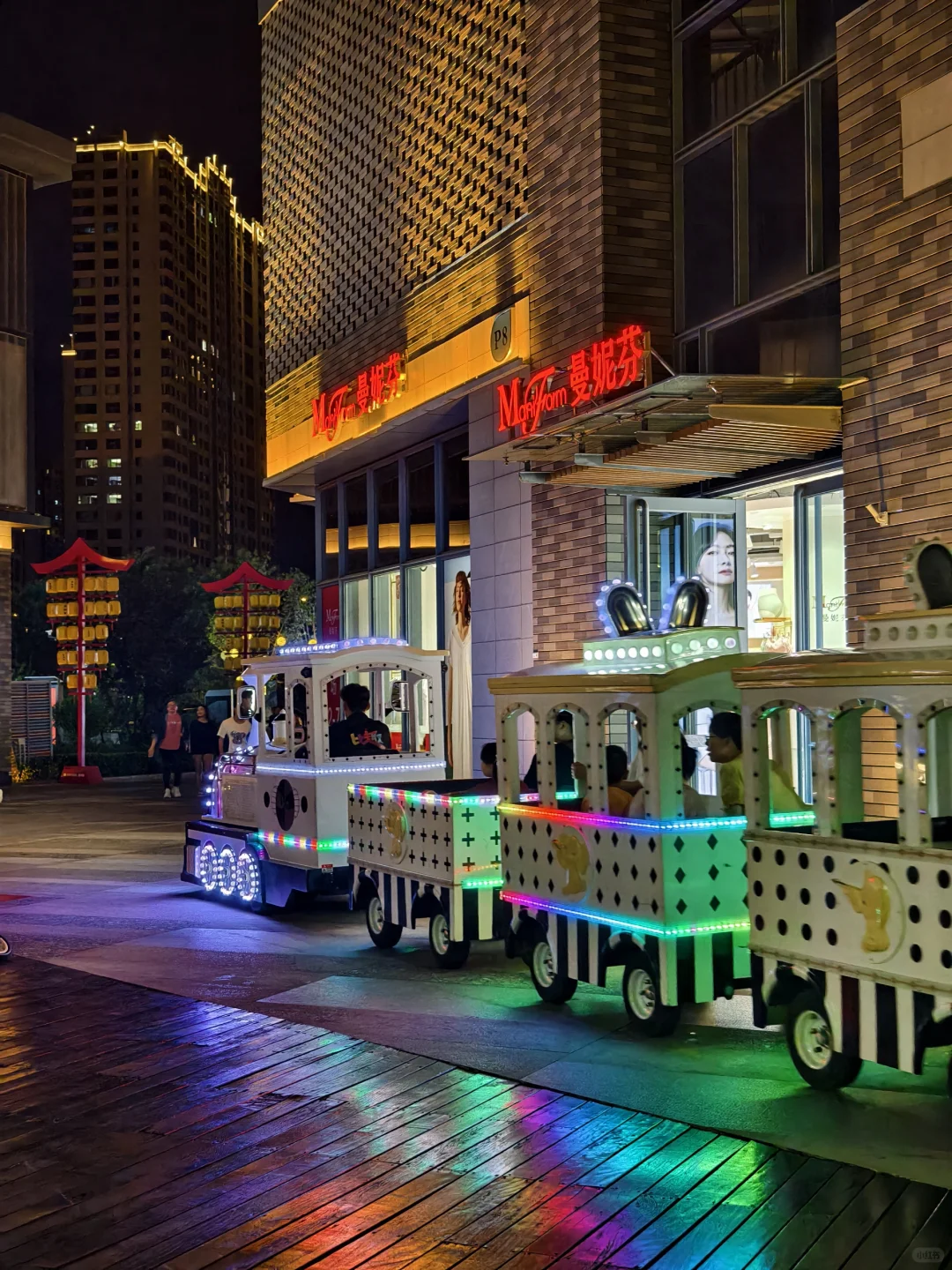 夜晚到来,各种布景灯亮起,超有松弛感