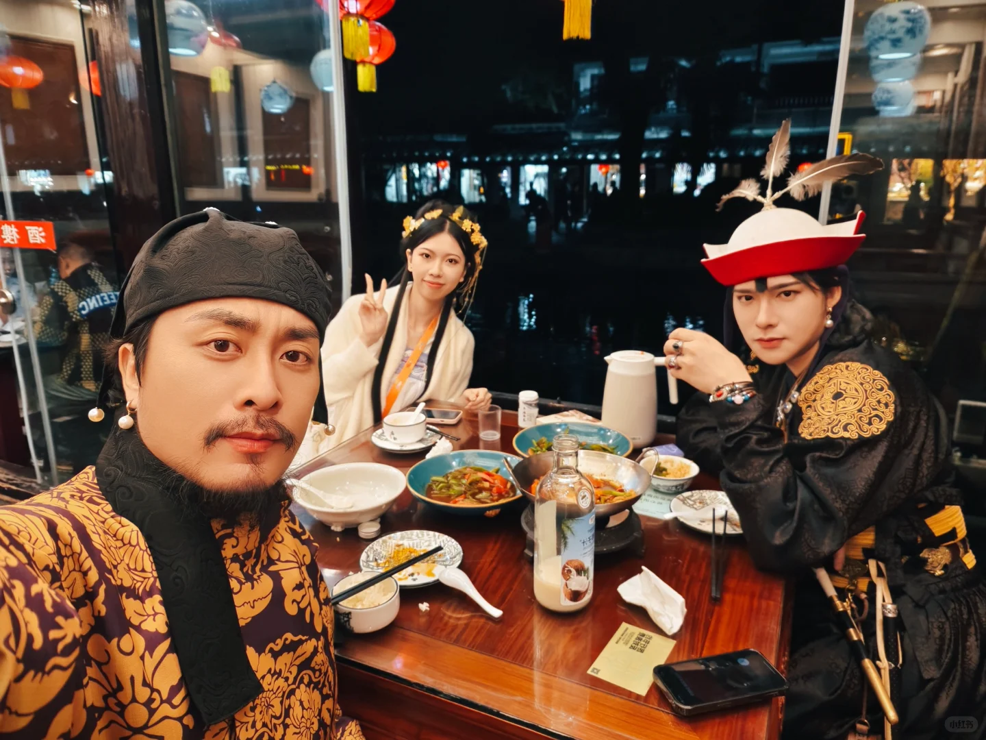 快看!对岸有群人在唱歌击筑…