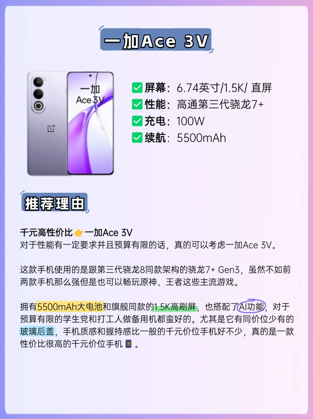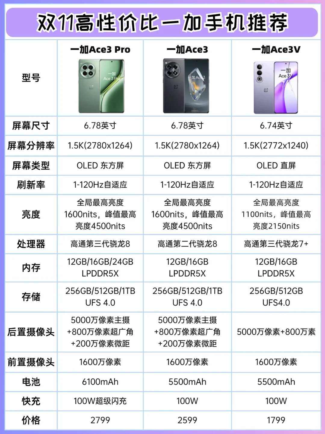 一转眼双11已经到了,有粉丝朋友在问一些高性价比手机,那么今天给大家推荐一下一加Ace 3系列三款高性价比手机,大家可以根据自己的需求选择👇