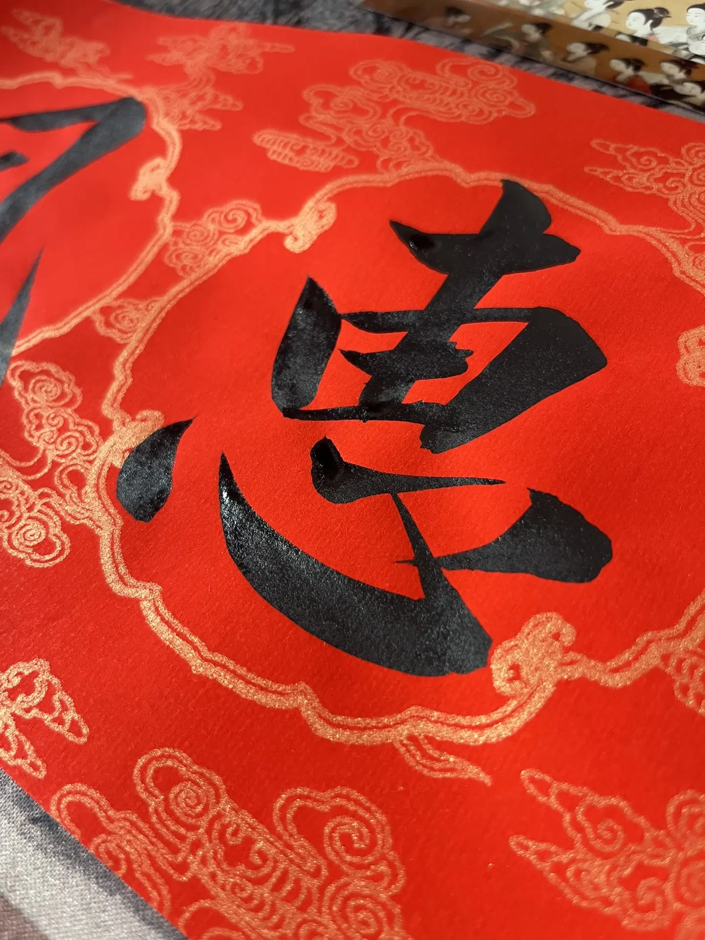 这个对联墨汁颜色太黑太亮了……