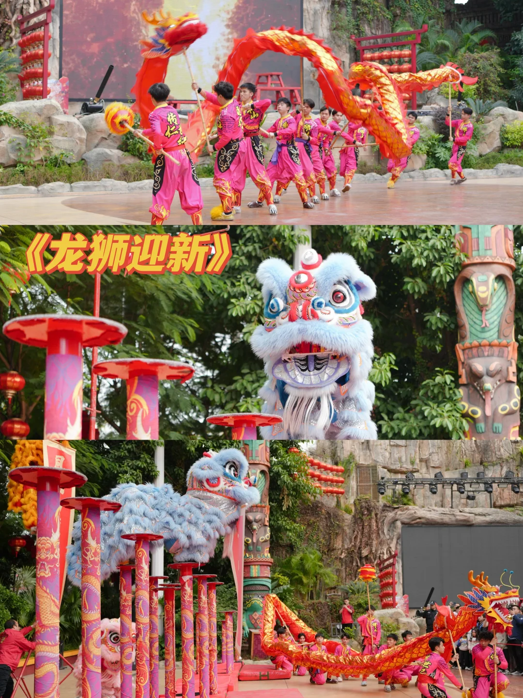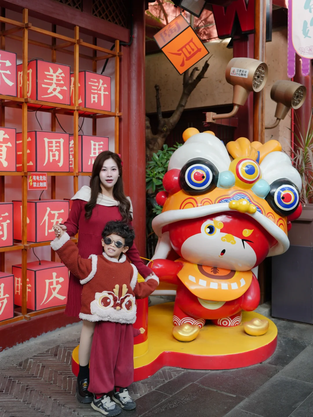 有没有宝妈还在发愁,新年带娃去哪里 今天和大家分享一个好去处, 集历史文化、艺术表演、美食小吃、拍照打卡为一体 那就是广东千古情景区啦~ 即将推出的新春主题是——狂欢中国年🎉 太多好玩有趣打卡的地方~来到这里就舍不得出去了✨ 今天和大家分享敲全攻略~快码住!游玩不跑偏 —— ✅特色街区 👉市井街 热烈的烟火气,各种各样的小吃😏 还有很多新年的氛围打卡点哦 鱼灯氛围、卖货郎、挥春送福…… 👉穿越街 复古的街道挂满各种老式的招牌,穿上旗袍、古风的服饰等 拍照📷简直不要太好看 📍大型互动体验项目《恐怖研究所》👻 👉波西米亚街 整条街的布置是热带丛林风格 这里主要是休闲放松,咖啡厅、茶室…… 玩累了,也可以在这里休息一下 📍沉浸式影院《幻影空间》 👉风情街 异域风的布置,会有巡回表演 里面也很适合拍照打卡休息哦,还有风情餐厅 📍👻屋《聊斋惊hun》 👉椰风海韵街、武术街 就在穿越街二楼哦~喜欢拍照打卡的千万别漏啦 📍互动体验项目《虚拟空间》 📍沉浸式演出《南海一号》 —— ✅演出节目 bi打卡的主秀《广东千古情》 这是一部“敢闯敢拼”广东精神的生动写照 一部珠三角的文化传奇。 讲述几千年广东的辉煌历史, 表演大概在60分钟,整体的视觉非常震撼~ 很值得观看👀一定要打卡哦 ——· ✅狂欢中国年氛围感节目分享👇 🏮手工体验《挥春送福》🏮《鼓乐贺岁》🏮《龙狮迎新》🏮《狂欢中国年》🏮《新春狂欢派对》🏮大型实景主题秀《烈焰狂欢》 —— 游玩Tips👇 1️⃣景区每天有很多表演看哦~大家进园后记得留意节目单哦 2️⃣园区是一票通玩的,遛娃的建议错开高峰时间 3️⃣提前根据《广东千古情》场次购🎫,越早买座位越靠前哦 4️⃣建议自驾🚗门口有很多停车位,很方便哦 —— 一天逛下来,真的满满当当 看了精彩表演、吃了美食、拍了很多照片~ 孩子玩的很开心😁 欢欢喜喜中国年,来广东千古情景区就对了