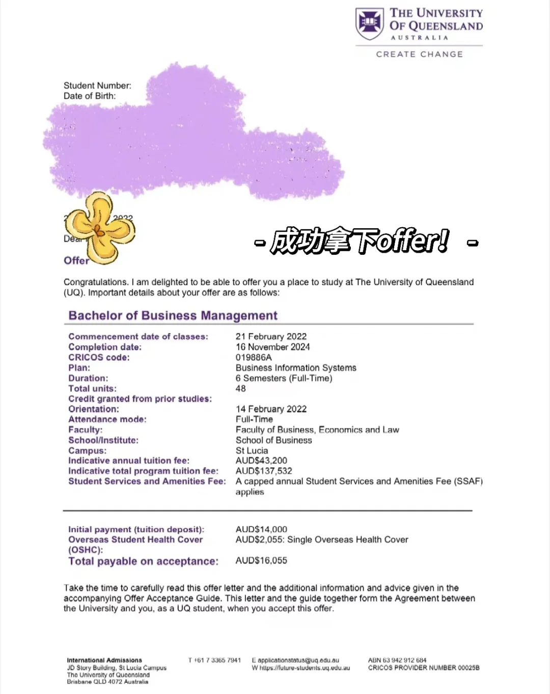 我自己在申请的时候也走了很多弯路,寻找过多家中介…国内中介收💰费普遍都很高❌,动不动就大几万😩,并且比起澳洲本地中介没有那么专业🧐后来经过朋友的建议找了澳洲本地中介,才知道是完全免🆓费的!!真的真的不要浪费钱呀。来了昆士兰之后虽然作业多,但在3年里学到了很多知识,UQ学习氛围很好,老师都很友善,未来可期~写了这么多希望对正在🈸️请的宝们有帮助!