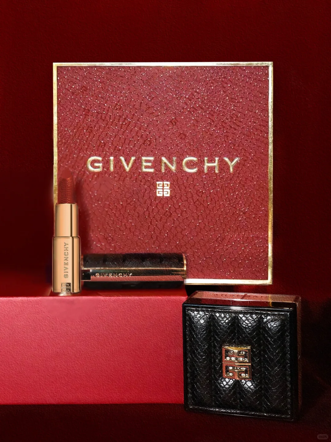 新年即将到来 宝们准备好新年开颜利器了吗 最近收到了纪梵希新年礼盒 复古红搭配烫金边框 简约中带着高级 限量版黑金蟒纹限定系列 更是纪梵希献给蛇年的大礼 - 💽纪梵希明星四宫格柔雾散粉限量版 蛇年限定黑金蟒纹盒盖 把蛇年元素及高定设计合为一体 创造出属于蛇年的style 💡经典四色调和 修饰泛红暗沉等多种肌肤问题 专研调光科技 只压油不压光 打造高级妆感 -- 💄全新限定小羊皮331行运绯红 带来2025的第一笔红色 蟒纹印花气场全开 橘调红棕色泽 优雅显白 朋友聚会和过年串门 我就涂它咯 - ✨ 2025和纪梵希一起 新年气场全开