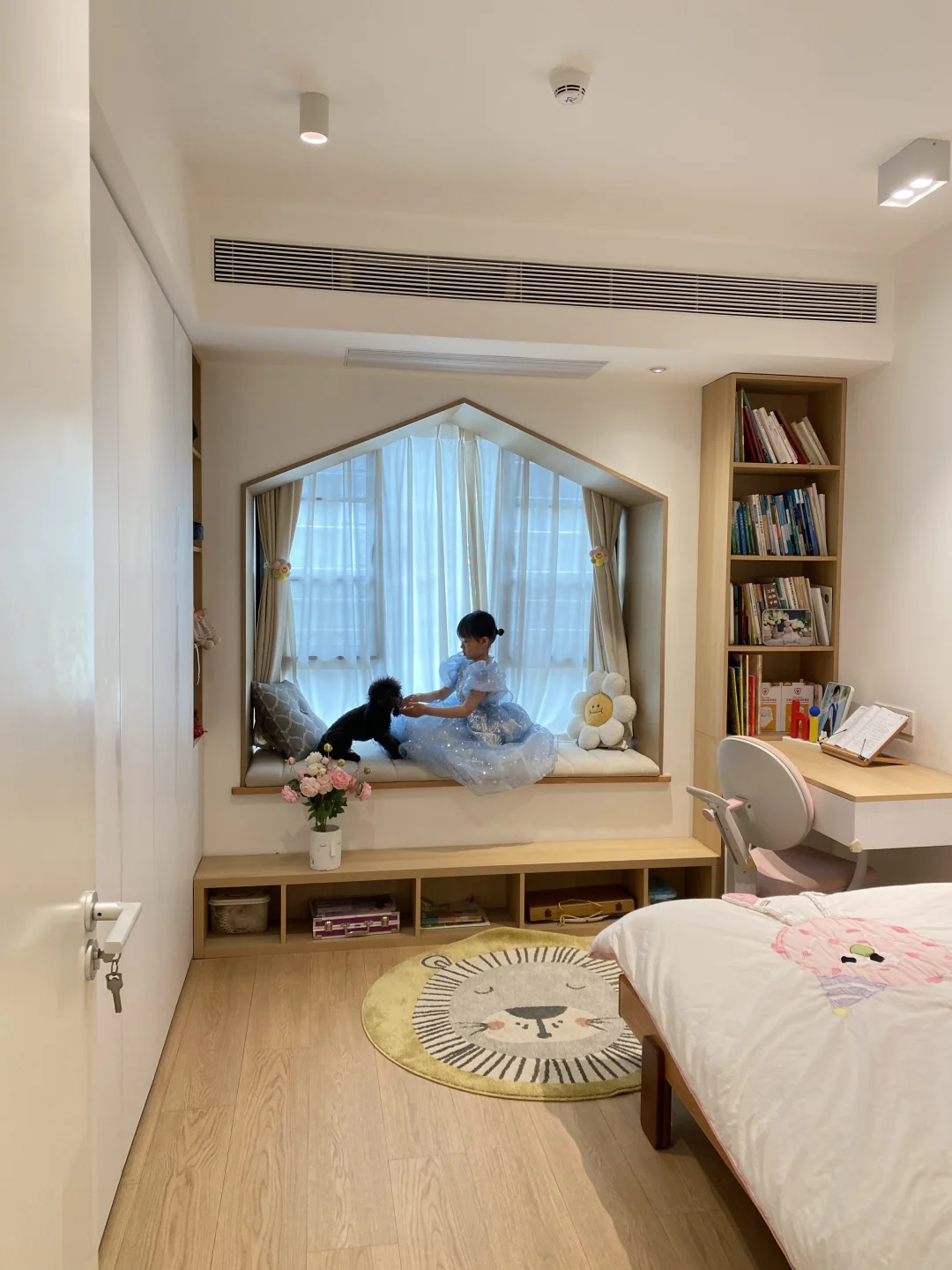 房子是四房,儿子、女儿、小狗都有自己独立的房间