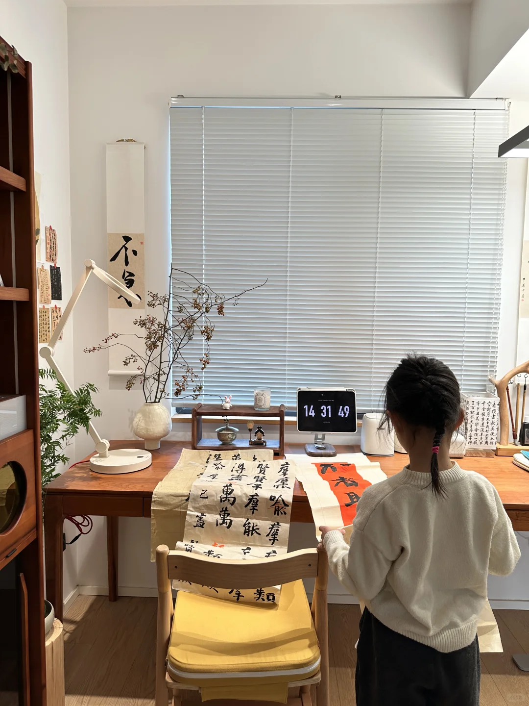 还和孩子们一起上游泳班、书法班