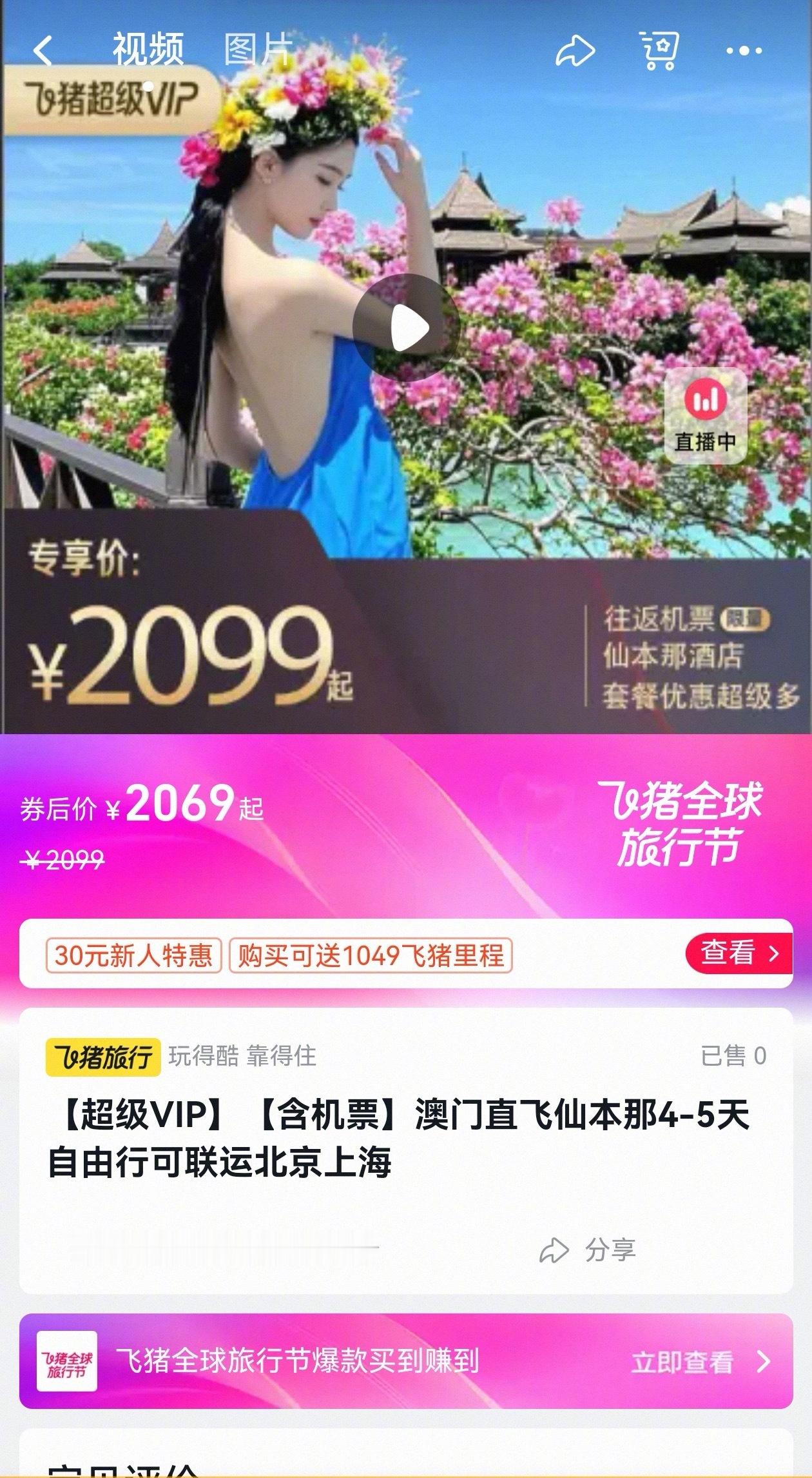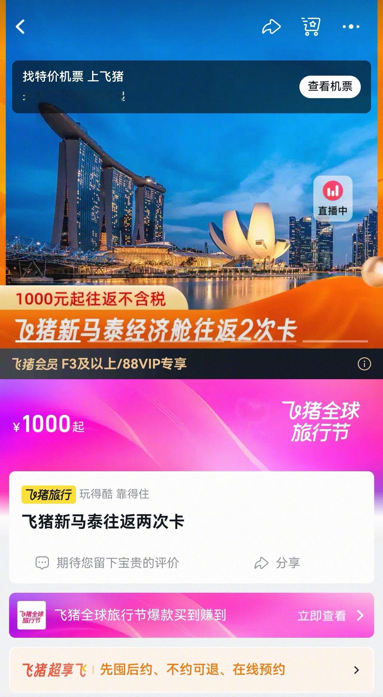 上飞猪千元抢泰国皇室同款酒店陆续看到泰国恢复演出状态了,趁这个机会飞猪给大家送福利喽,千万不要错过,今晚飞猪超级VIP直播间,泰国酒店心动价来袭。划重点:爆款酒店今晚直降千元起,飞猪超级VIP专享!