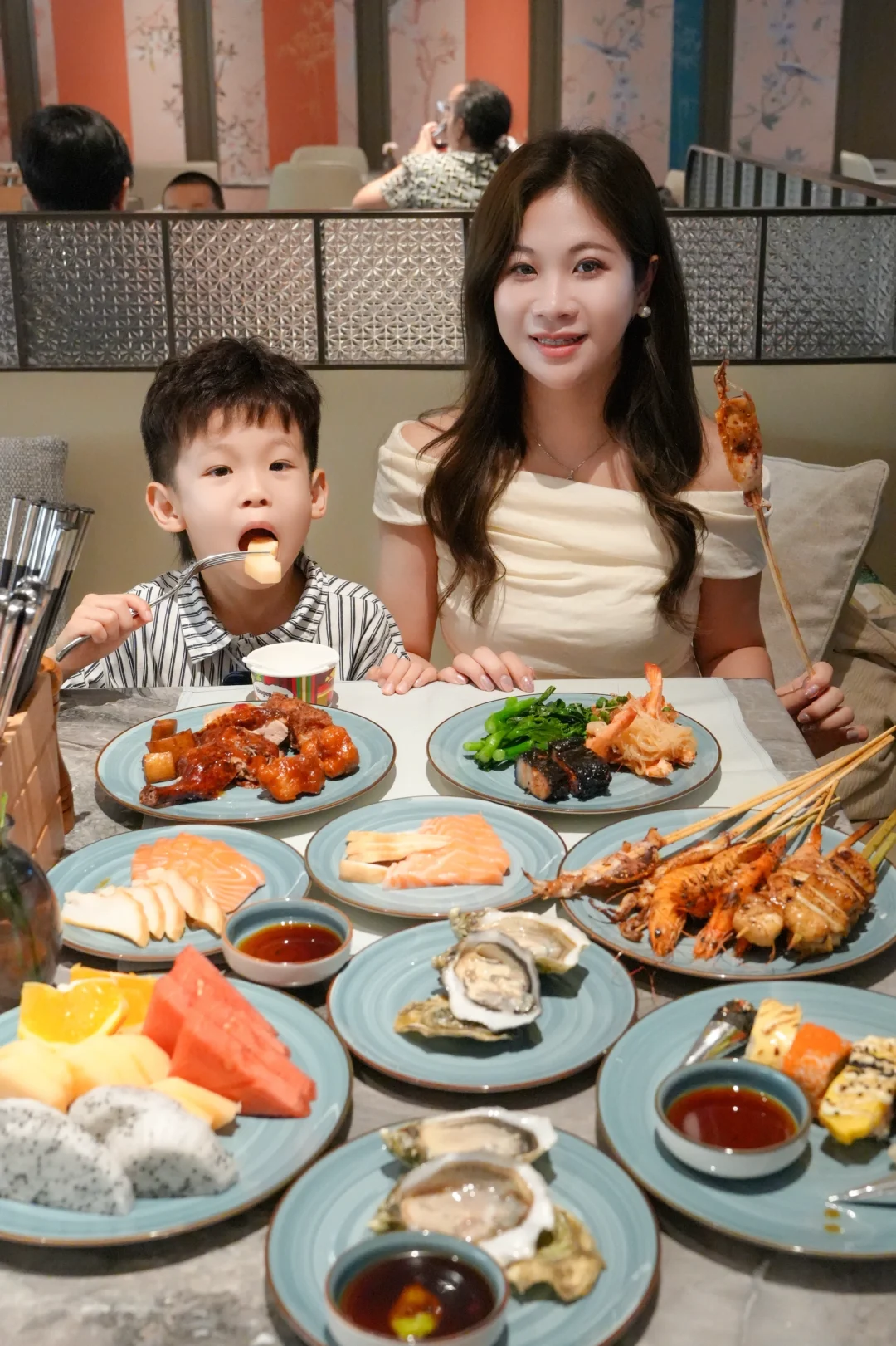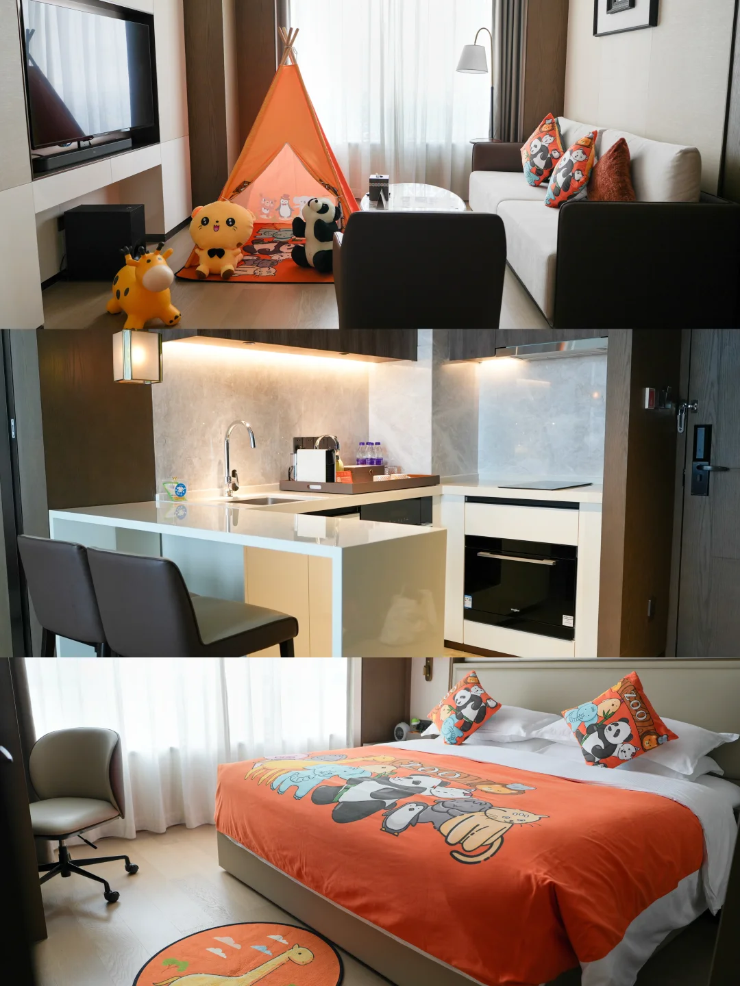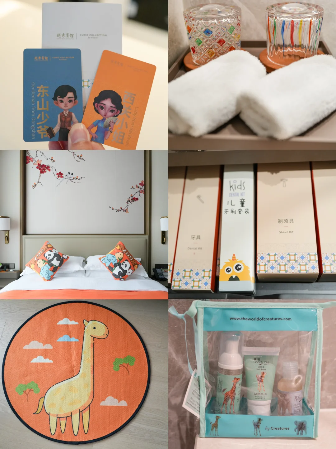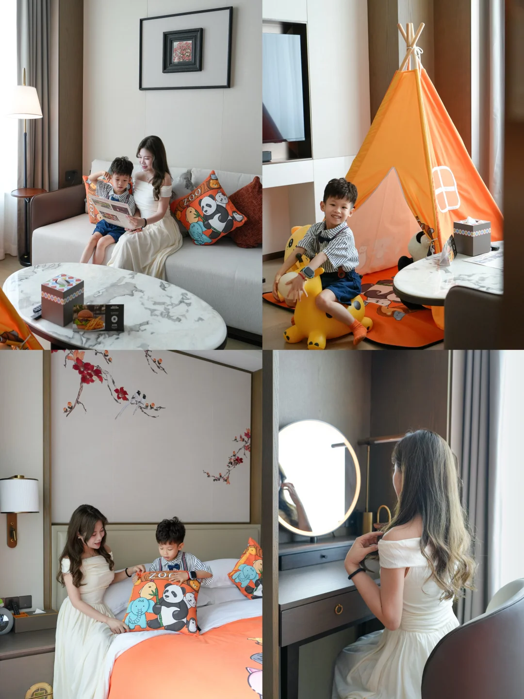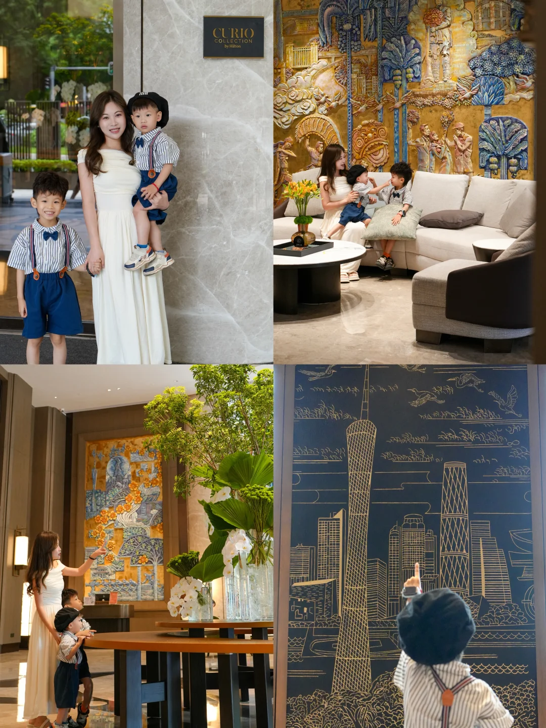 带娃亲子出游,锁住这家酒店包满意的! 孩子去了一次以后还问我“妈妈,什么时候可以再去一次呀”🤣🤣🤣 就是这个广州越秀宾馆希尔顿格芮精选酒店,就在繁华的市中心,无论去北京路、越秀公园、中山纪念堂……都非常方便👍🏻 吃喝玩乐一站式搞定,就连我家弟弟都可以“敲长待机”模式~ - 👉环境很特色 带娃一起开启时光探寻之旅~ “岭南花窗”、“岭南园林窗洞”、“广州的市花木棉花”等等具有老广特色元素融入进酒店大堂 氛围感直接拉满,随便拍拍都很出片📷 遛娃的同时还可以给娃科普广府文化~ 酒店里面还有儿童乐园、游泳池、1960屋顶花园、健身房…… 在这里可以实现躺平式遛娃🥰 - 👉房间很细节 这次我们入住的是亲子套房 拿到房卡很惊喜——竟然是西关小姐和东山少爷✌🏻太有特色啦~ 打开门后就看到有孩子喜欢的帐篷⛺、各种各样可爱的小动物公仔🥰 小家伙们都抑制不住激动的心情了~ 房间还贴心的给孩子准备了儿童牙刷🪥、儿童洗护套装、儿童拖鞋…… 而且还配套了洗衣机、电磁炉、冰箱……在这里真切体会到了家的感觉~ - 👉餐饮很美味 ✔️越秀轩中餐厅 想吃粤菜,当然是来这里啦! 主打广府粤菜和手工点心❤️ 菜品精致且美味🥰 砂锅盐焗海白虾、脆皮🐔、陈皮鼓油蒸鲍鱼…… 吃的根本停不下来👍🏻 ✔️厨艺全日制餐厅🍴 各种类型的美食应有尽有 有大人喜欢吃的三文鱼刺身🐟照烧大虾🦐现开生蚝🦪…… 还有小朋友喜欢吃的甜品🍰、水果🍎、冰淇淋🍦…… 大人吃的很满足,小朋友吃的很开心😁 - 酒店对面就是越秀公园,遛娃真的很方便吖! 来广州游玩的,一定要码住这个充满老广特色的酒店!遛娃一站式躺平~