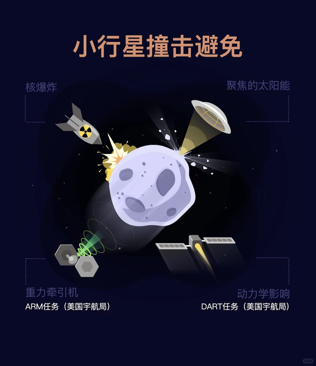 4️⃣核打击:在小行星附近引爆核炸以改变其路径。