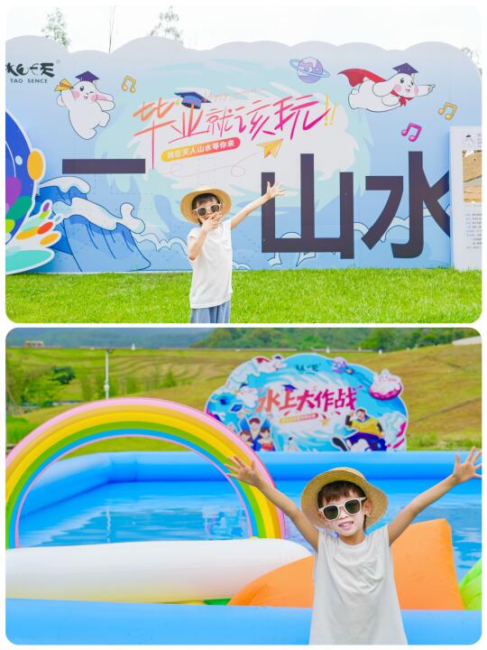 哥哥马上就大班毕业啦! 也算是完成了他人生求学中的一个重要转折阶段… 那仪式感必须得有✅ 老母亲决定给他安排一个难忘的毕业游 思来想去,决定带他逃离城市喧嚣🍃 来从化感受一下与山水艺术共度🏔️拥抱大自然 ——天人山水大地艺术园 就是被你们问爆的亲子大片图,快来抄作业啦! · 🌈游玩攻略: 园区导航定位:大地艺术园游客中心 🚶‍➡️建议乘坐免费观光车上到山顶终点站,然后从山顶至下,一路玩下来 景区里面也有好多拍照打卡的地方,推几个个人比较喜欢的游玩点👇🏻 ✅玫瑰瀑布、绣球花墙、登科桥、日夕廊、原住民 分分钟出大片,怎么拍都好看! ✅诺诺庄园、西西农场、轻水乐园、六六旋转木马 这些地方除了出片外,还是小朋友的快乐天堂!滑梯、秋千、火车、萌宠、戏水…… ✅山道滑车、丛林穿越、水上单车 这些都很值得打卡体验👍🏻 · 🏠住宿: 导航定位:溪谷营地 我们当时入住的是临江仙溪谷小院 是一个独立的小庭院🏡 庭院里面还设有露台和独立泡池~ 一边泡着温泉♨️一边听着旁边小溪的流水声😆 简直不要太惬意🥰 遛娃的还可以带孩子去朔溪玩水 与大自然来个亲密接触~孩子玩的不亦乐乎😎 总得下来,在这里度过了一个很愉快的毕业游🎉 . 游玩Tips: 1️⃣一定要穿好长裤长袜,大自然难免蚊虫多,注意防范 2️⃣夏天注意防晒,带个防晒工具呦 3️⃣溪谷营地和大地艺术园有一段距离,坐接驳车往返,有条件的一定要自驾!这样时间更自由~ 4️⃣夏天一定要带上泳衣游玩!园区和营地都有玩水的地方