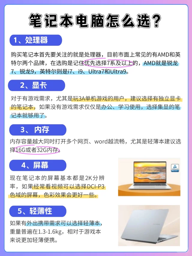 👀如果有外出携带需求可以选择轻薄本,重量普遍在1.3-1.6kg,相对于游戏本来说更加轻薄便携