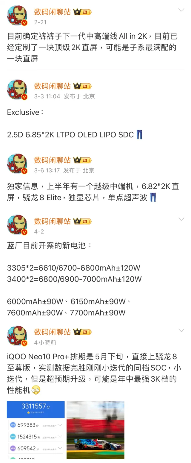 宝子们,5月下旬有一个越级中端机王炸要发布——iQOONeo10Pro+,目前首个3000价位搭载了骁龙8至尊版的新机👏🏻