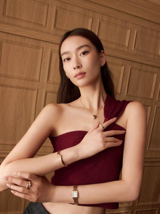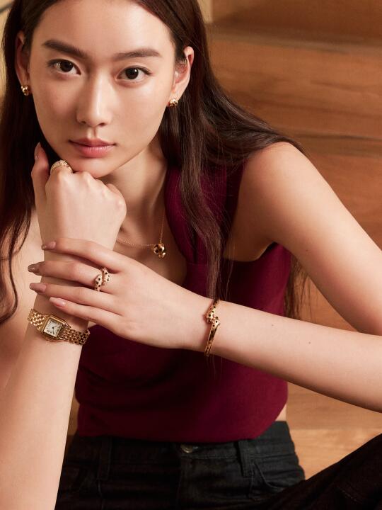 野心,从来不是贬义词, 内心充沛的力量源自于对自己的坚定和信任。 猎豹系列是野性和优雅的对撞。 猎豹作为卡地亚的百年象征,占据着无可比拟的标志性地位。 Panthère项链采用立体刻面的凌厉造型, 与精致柔和线条的戒指、手镯相得益彰。 方形表盘搭配着柔软灵活的表链, 象征着猎豹矫健的身姿。 - 不迎合,不退让, 在静与动之间, 猎豹精神,走出自己的节奏。