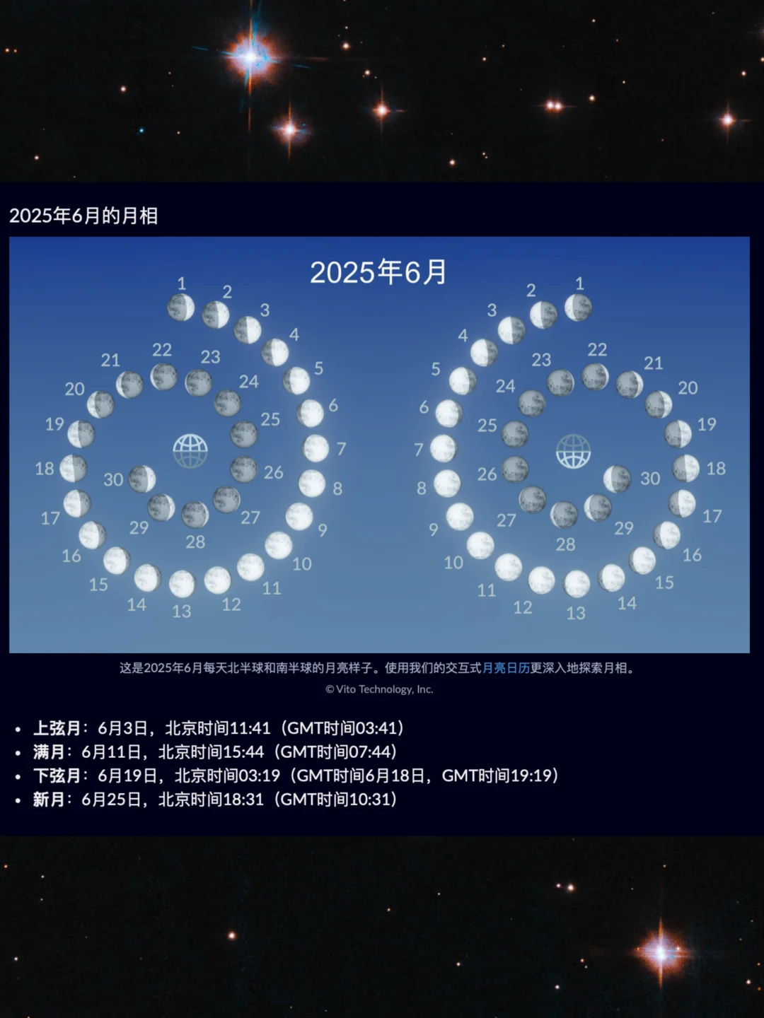 ⏰满月将于北京时间 6 月 11 日 15:44(GMT 时间 07:44)发生 。这是 6 月 21 日夏至前的最后一个满月,标志着北半球天文夏季、南半球天文冬季的开始 。