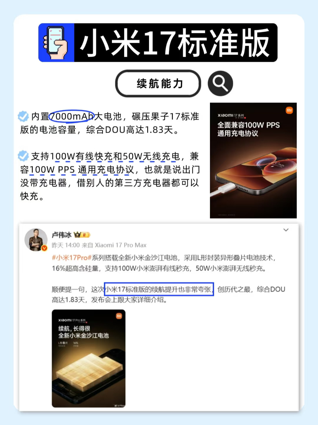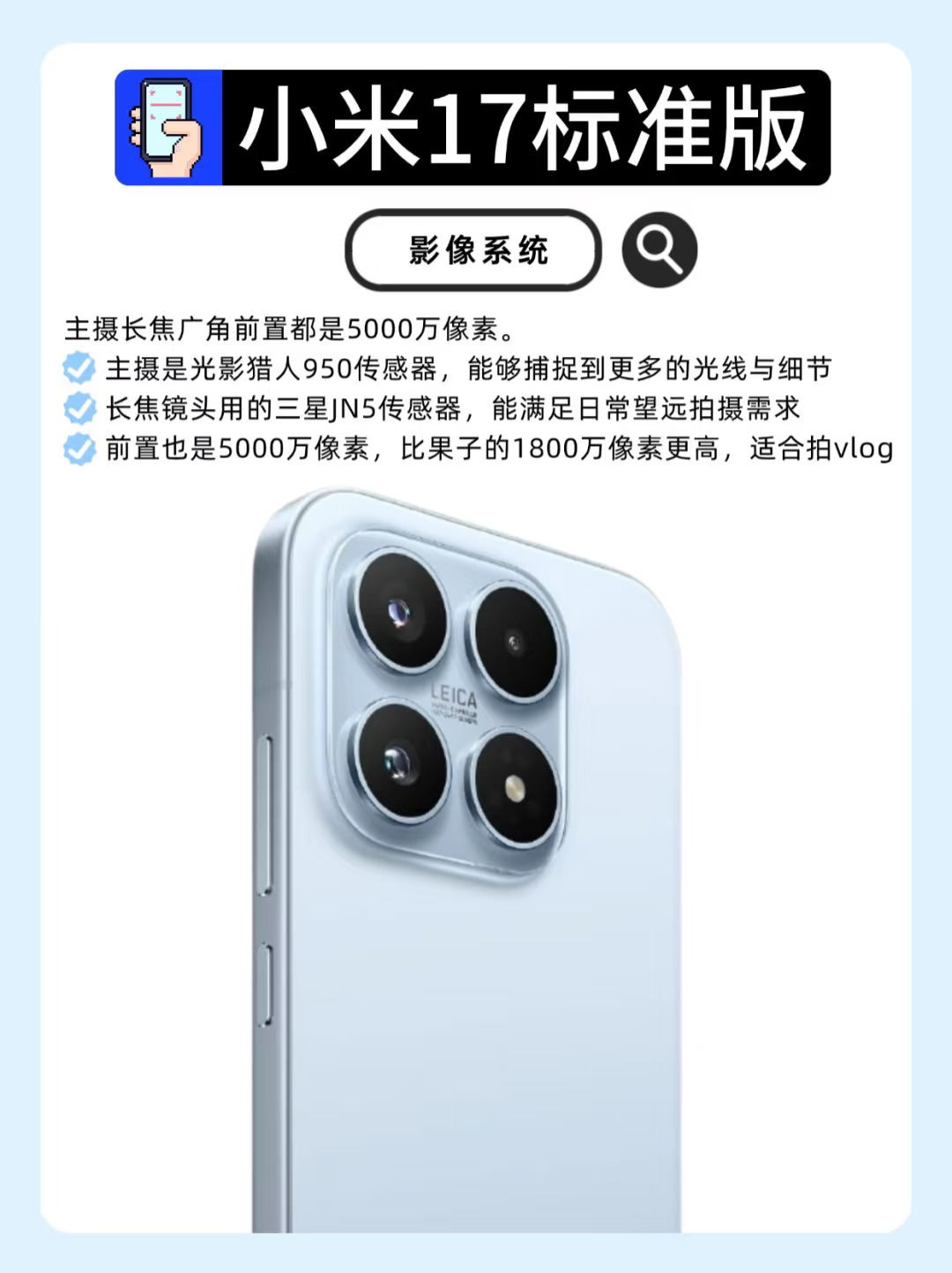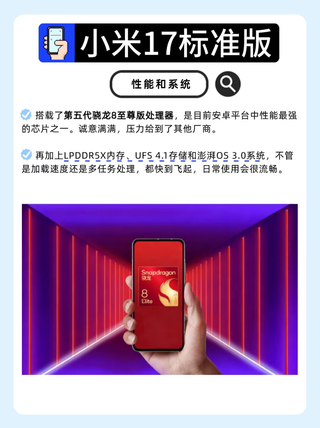 小米17系列正式发布啦,这次的标准版真的很能打,外观精致,续航持久,性能又强,感觉掀翻了iPhone 17的桌子。