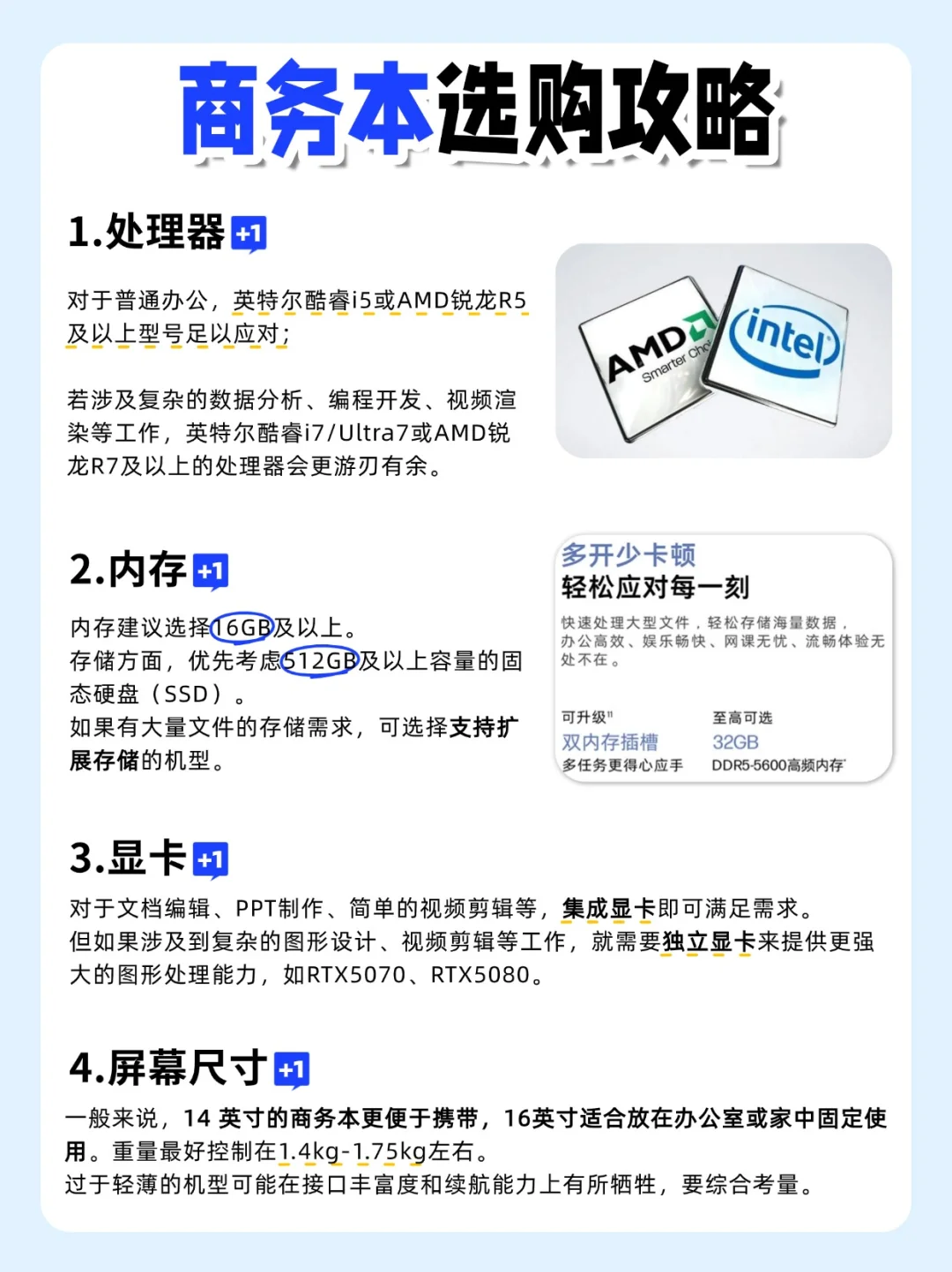 办公党选电脑,主要看四点: