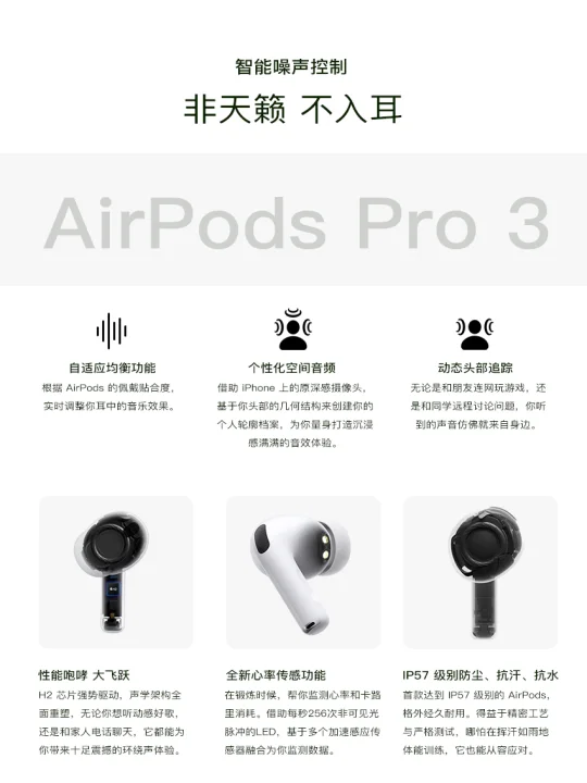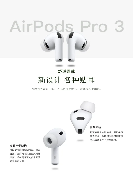以前戴耳机健身总担心掉,这款完全不会!苹果搞了10000次耳朵扫描才设计的弧度,耳塞向内旋转贴合耳道,加了泡沫微球图层更防滑。