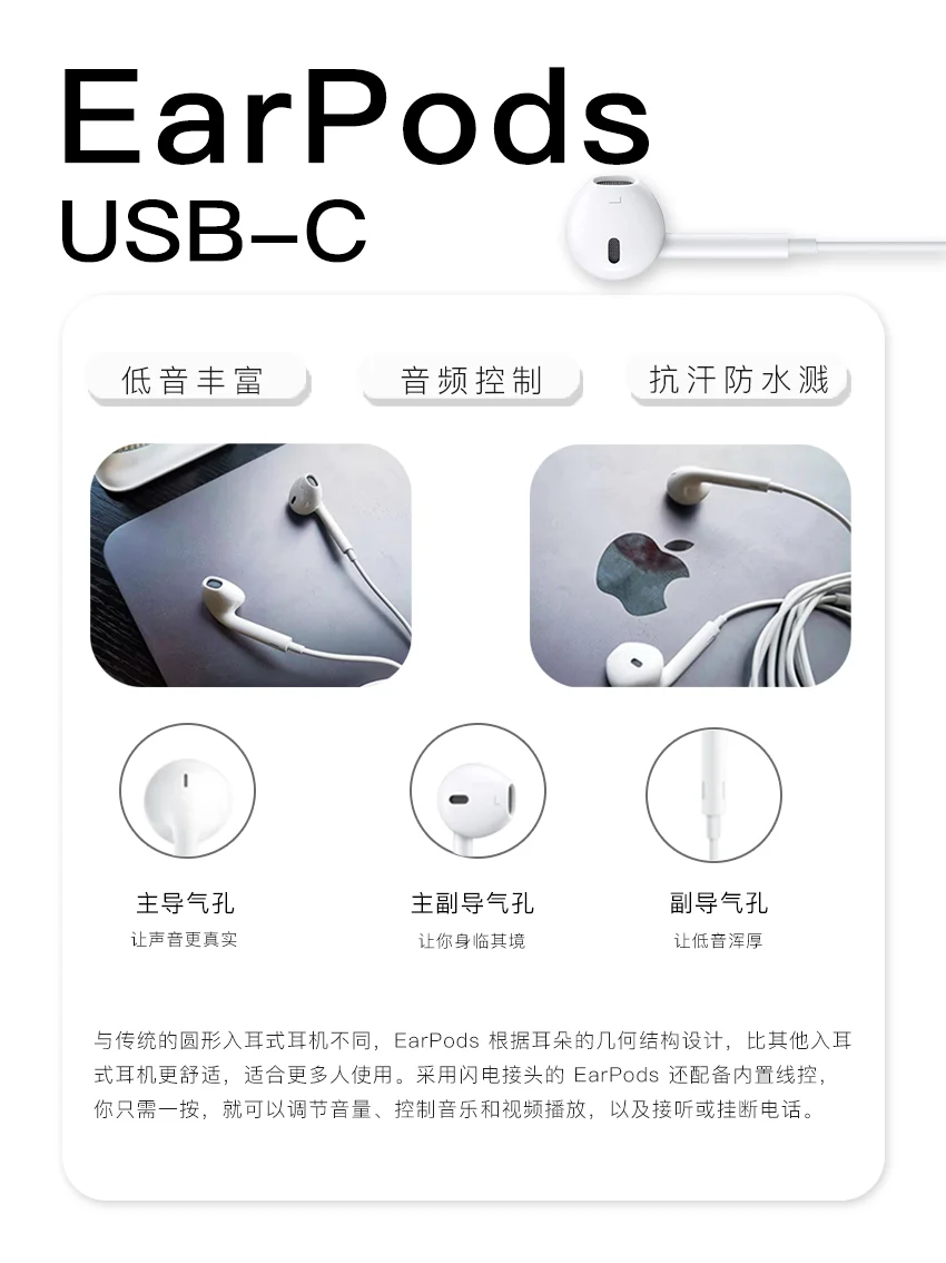 Apple原装 USB-C EarPods 续命!不仅充电接口和手机、平板通用,音质和操控更是戳中日常刚需,百元价位直接封神~