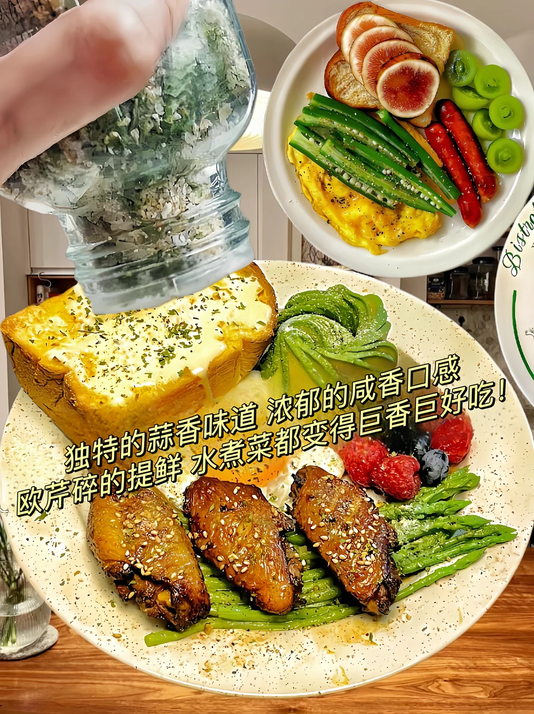 我愿称之为消灭减脂餐的神器 配料表干净,添加大蒜粉、欧芹碎和海盐 简直万能搭配,怎么能不好吃? 轻松撒一撒,所有的减脂餐都能变美味
