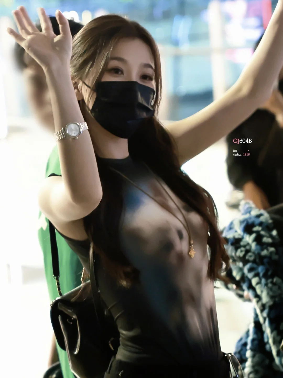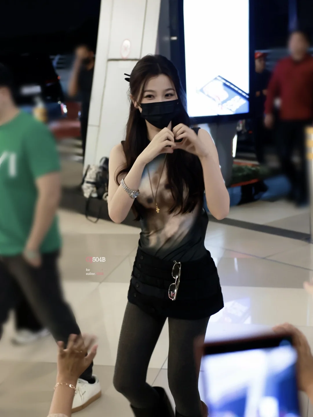 张天爱跟素人合影,胯真的好宽,大宅院似的
