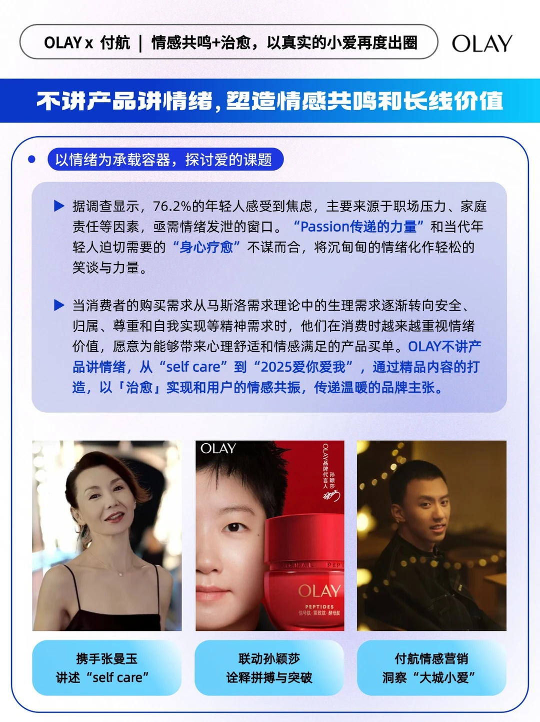 这部短片没有商业化的强烈输出,而是通过真实的人物和故事让观众感受到品牌的人文关怀。从“self-care”到“爱你爱我”,OLAY不讲产品讲情绪,希望每个人都能在繁忙生活中找到爱的力量。而付航则以敏锐的洞察视角,鼓励人们在逆境中依然热爱生活。这种情感共鸣,不仅让品牌形象更加立体,也让受众再次感受到品牌温暖。