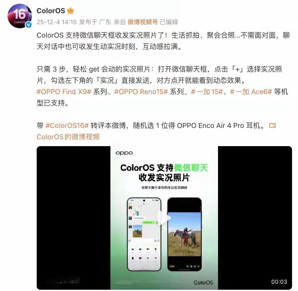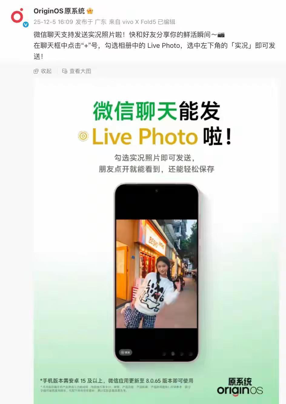 OPPO/vivo/小米等官宣支持微信聊天发送Live图