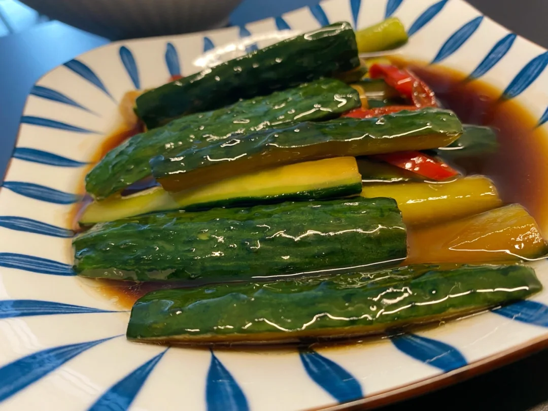 拌黄瓜的具体步骤,喜欢的宝宝们可以试一下~ 食材: 黄瓜2-3根,小米辣2根,大蒜2瓣,花椒八角1适量 料汁: 生抽1勺,醋3勺,耗油1勺,砂糖5克,盐适量(具体口味可以根据自己需求来加)。 ❶黄瓜洗干净切条加入少许盐腌制出水后沥干水份备用 ❷锅中加入少许油加热,加入小米辣,大蒜,花椒,八角爆香,倒入料汁,再倒入黄瓜翻拌均匀即可。 ❸盛到碗里,盖上保鲜膜放冰箱冷藏一晚上第二天早餐就可以拿出来吃了。