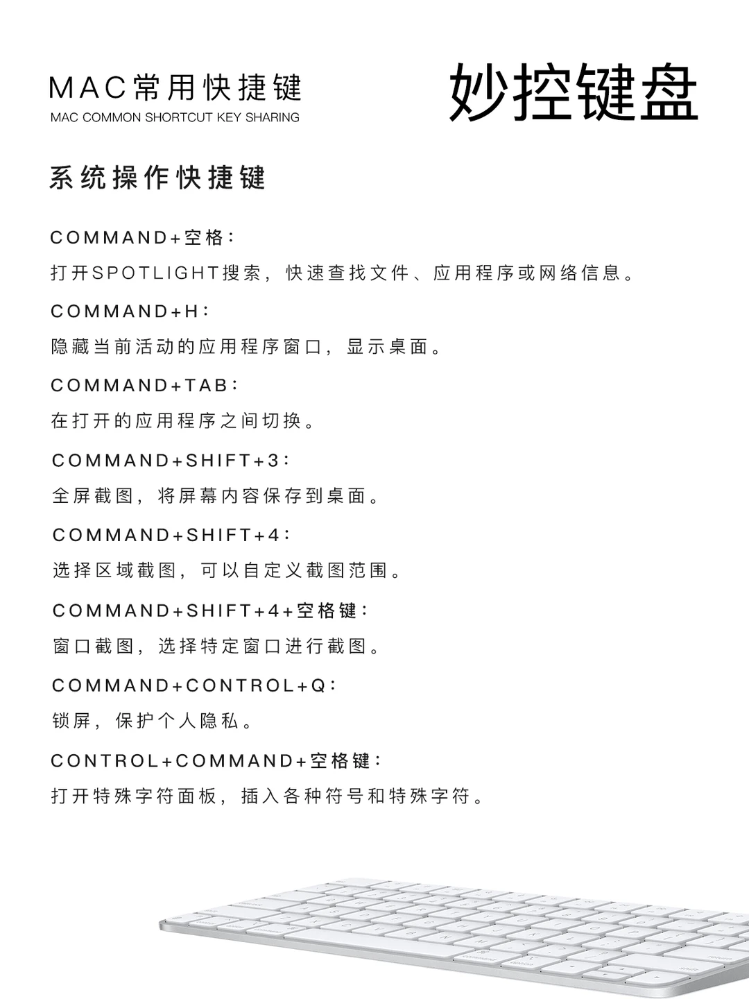 Command+Q:彻底退出当前应用,释放系统内存(注:部分场景可能触发息屏,以自身系统设置为准)。