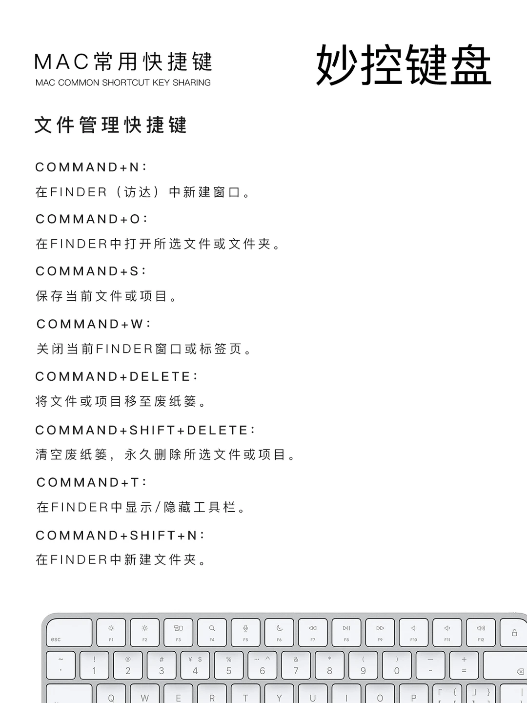 Command+W:关闭当前访达窗口或标签页,用完即关,桌面不拥挤。