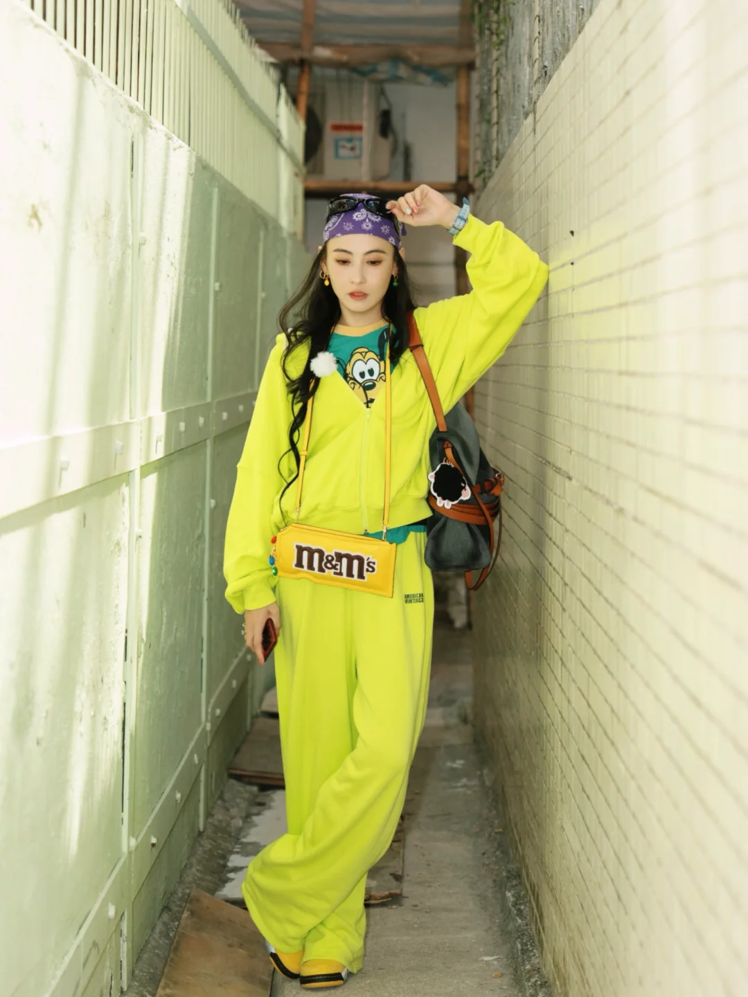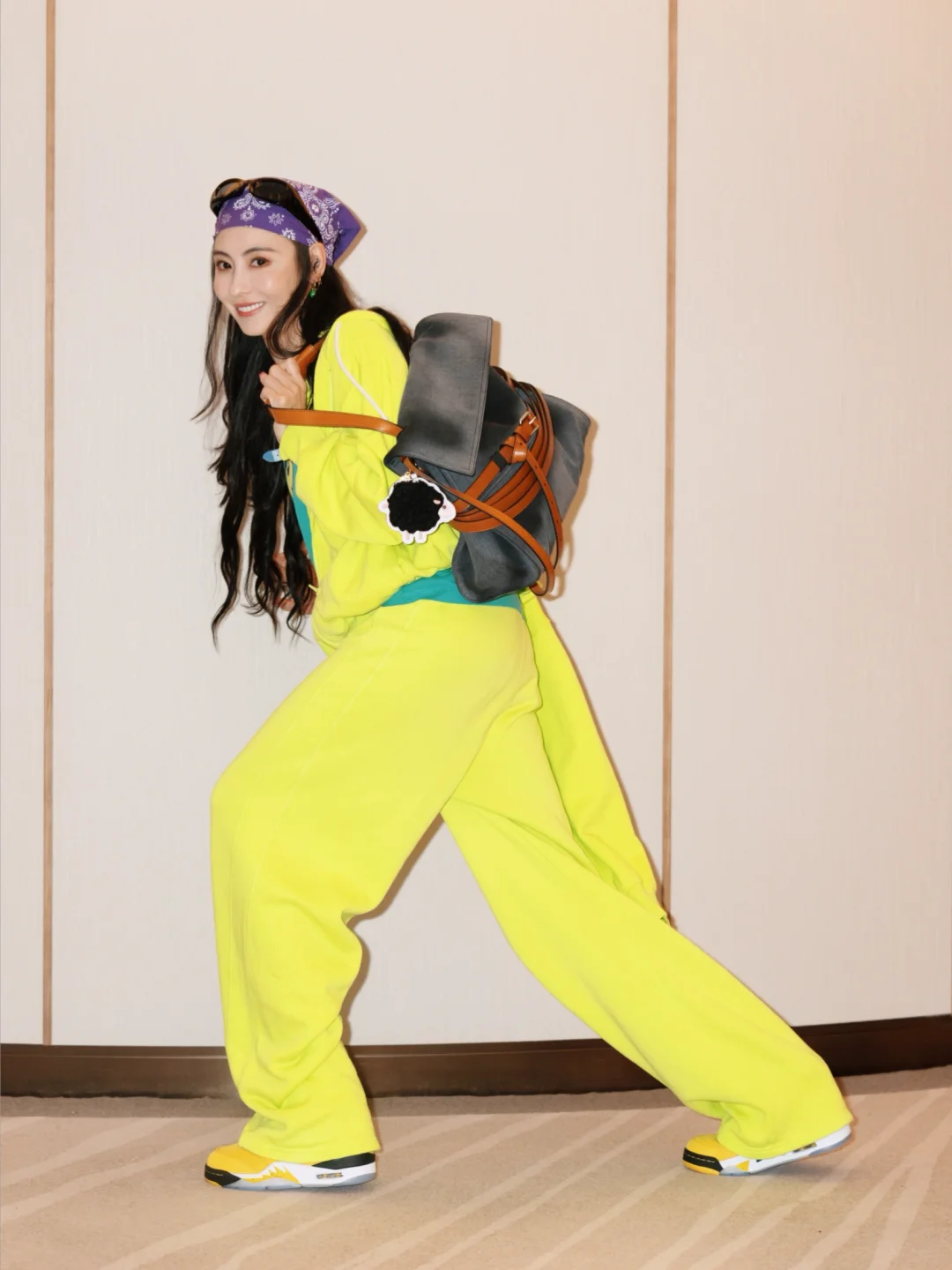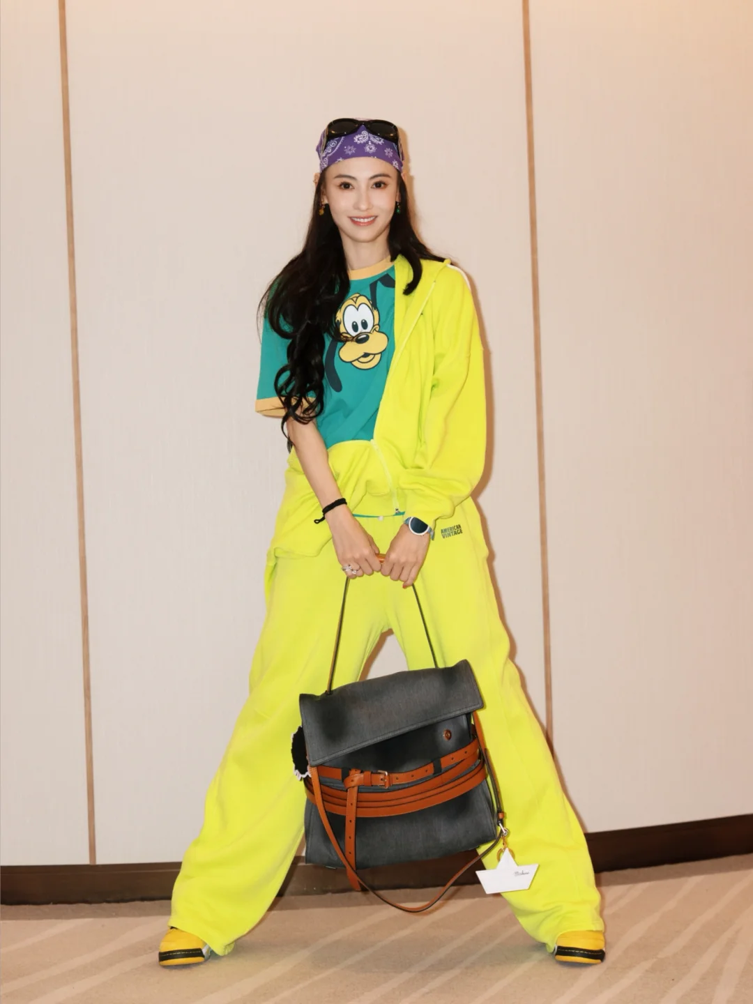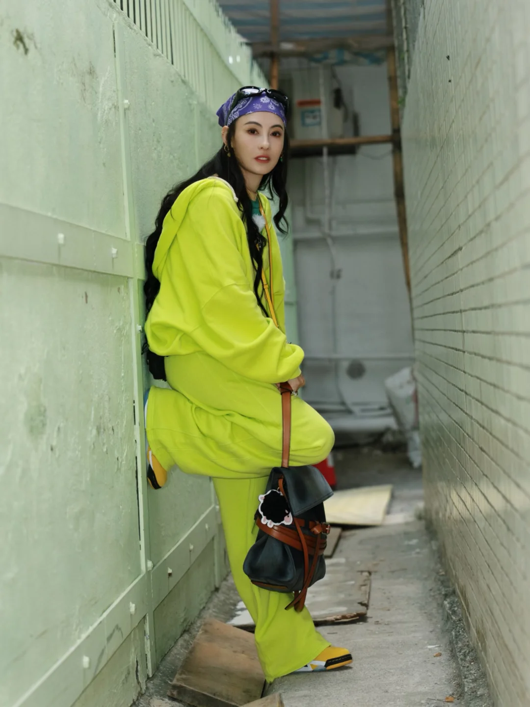 又又又被张柏芝亮色系穿搭狠狠戳中了! 荧光绿的运动套装张扬又鲜活,内搭联名短袖添了几分童趣,头巾一系更是把她敢穿敢搭的性子体现得淋漓尽致~ 她的穿搭像她的人一样,永远明媚耀眼,带着一股敢爱敢恨的洒脱劲儿。从年少时的惊艳亮相,到如今依旧鲜活的状态,张柏芝从来都不是被定义的模样,这份忠于自己的迷人,真的让人爱了很多年💚