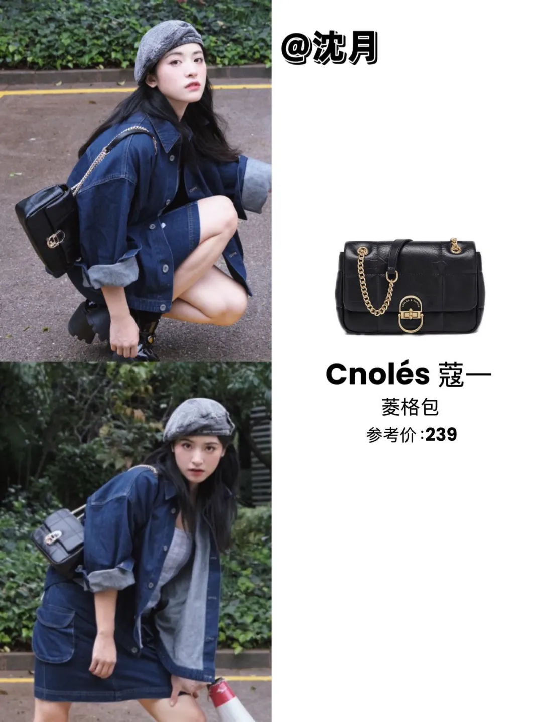 还有沈月同款的Cnoles蔻一菱格包,甜酷感直接拉满,完全是日常能照搬的搭配公式!无论是通勤下班还是约会都很百搭的一款。