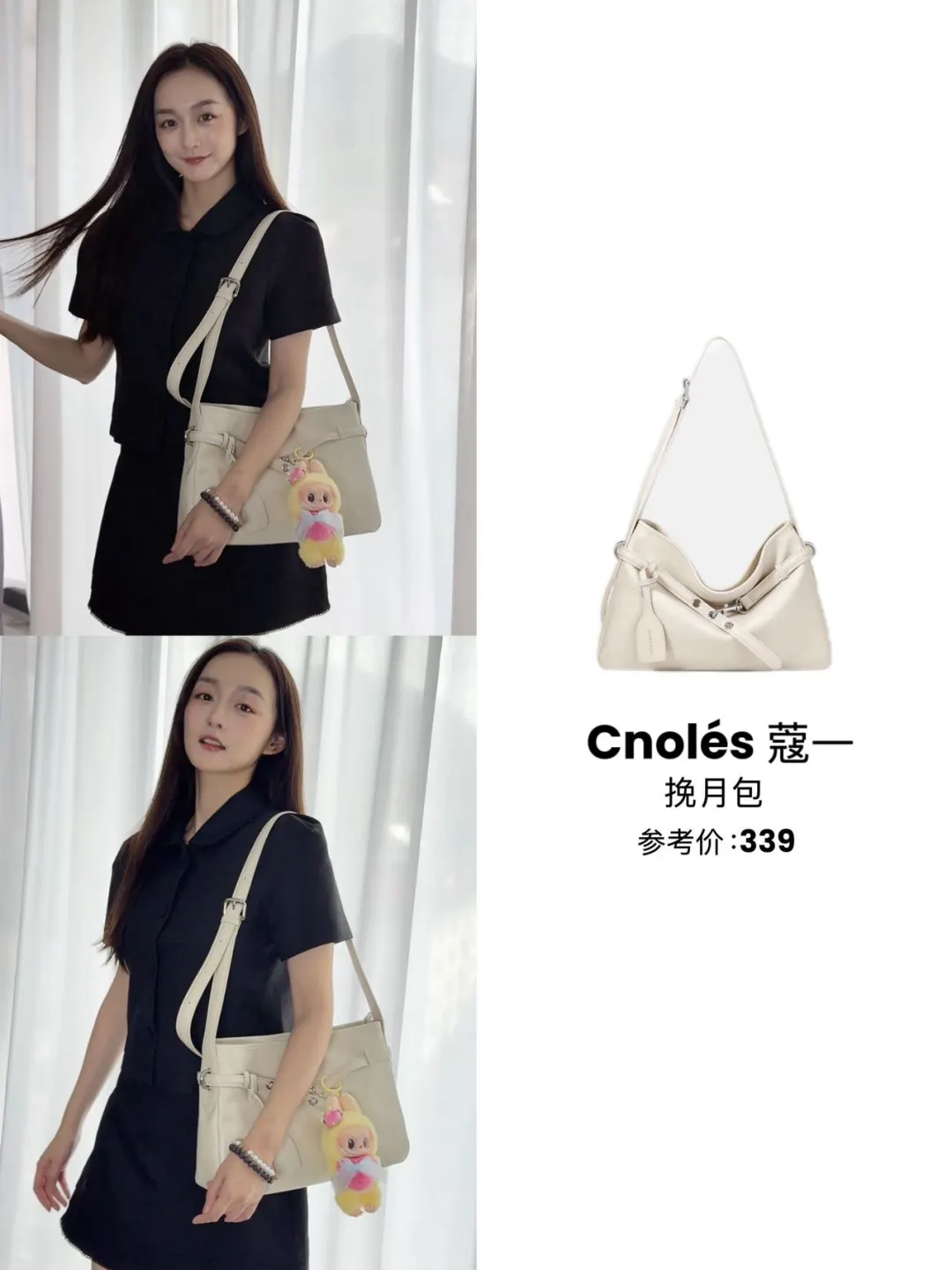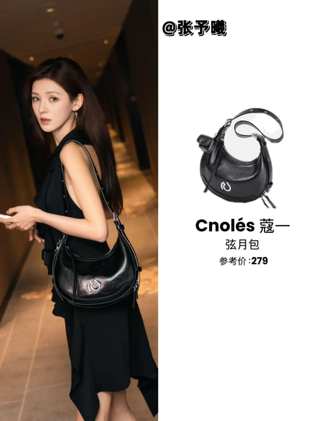 张予曦背的Cnoles蔻一弦月包,月牙造型设计感绝绝子!背出去不担心撞款。容量感人完全适合上班打工族去背的。可斜挎可单肩,实用长期主义闭眼冲。而且赵昭仪还背过白色的!真的黑白cp好好看~