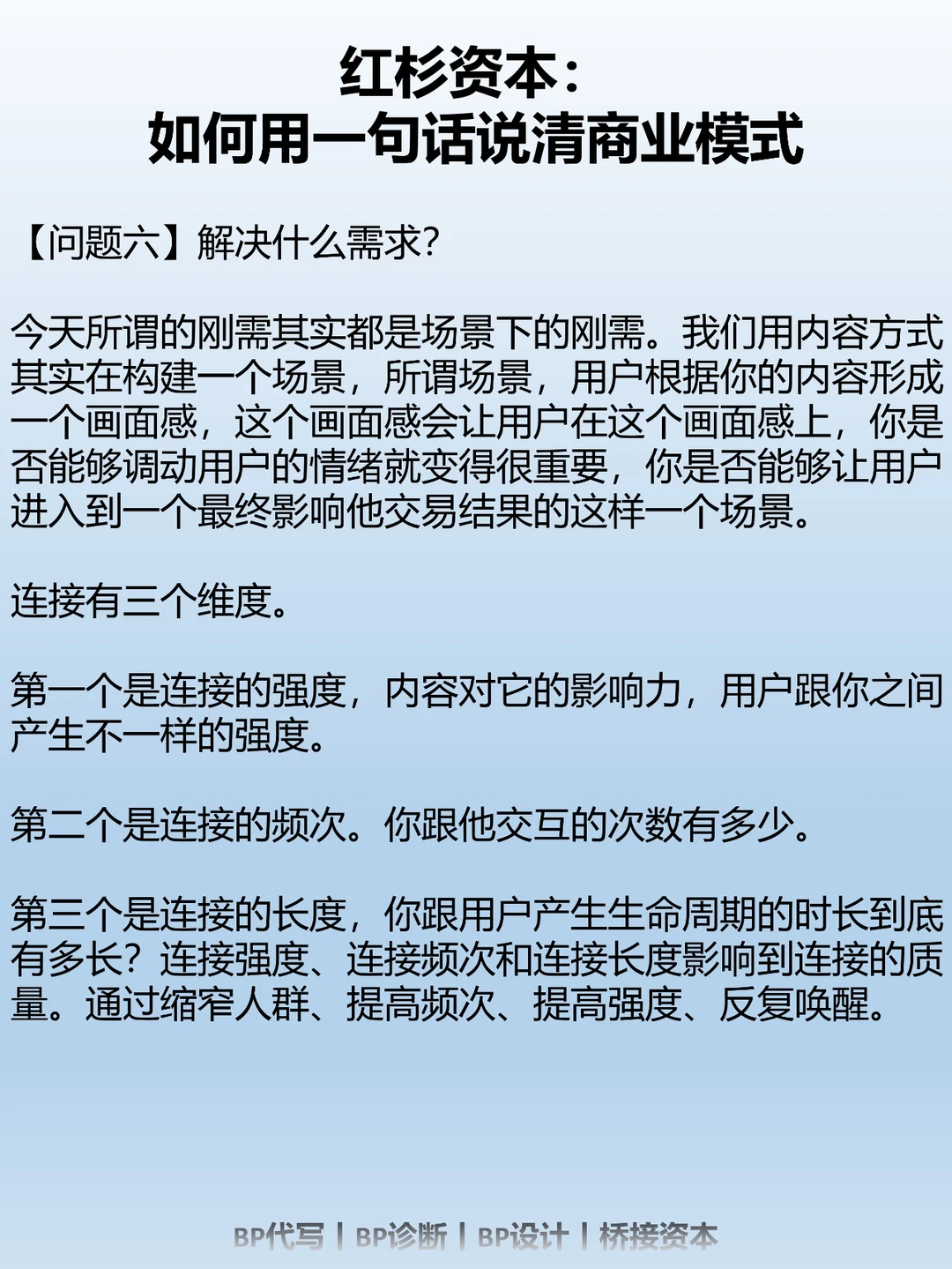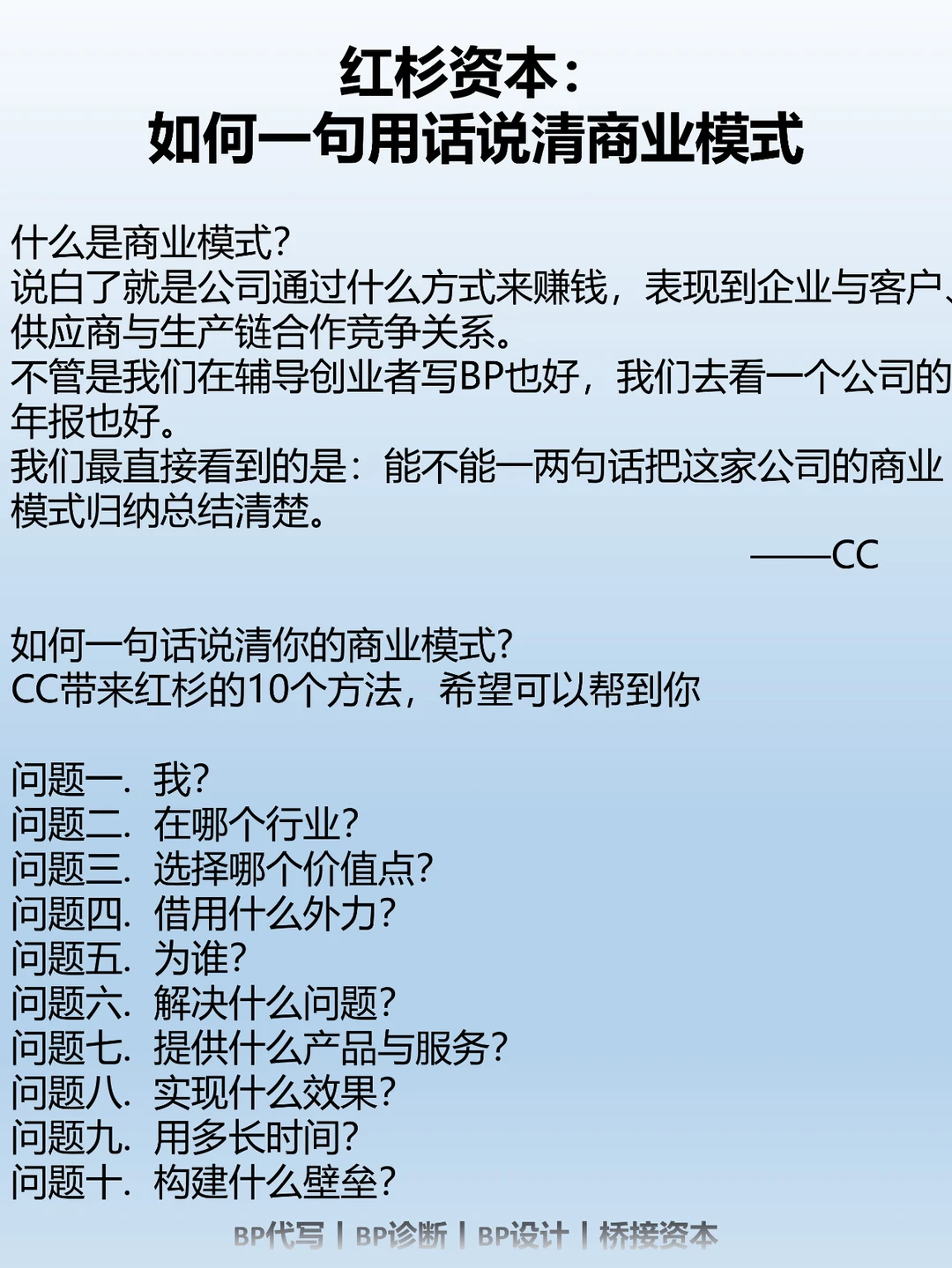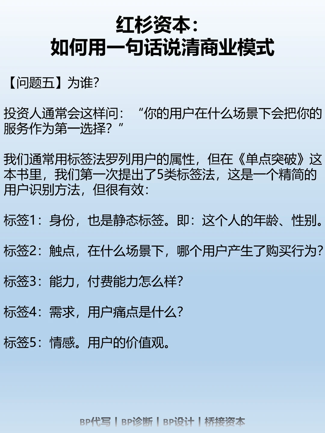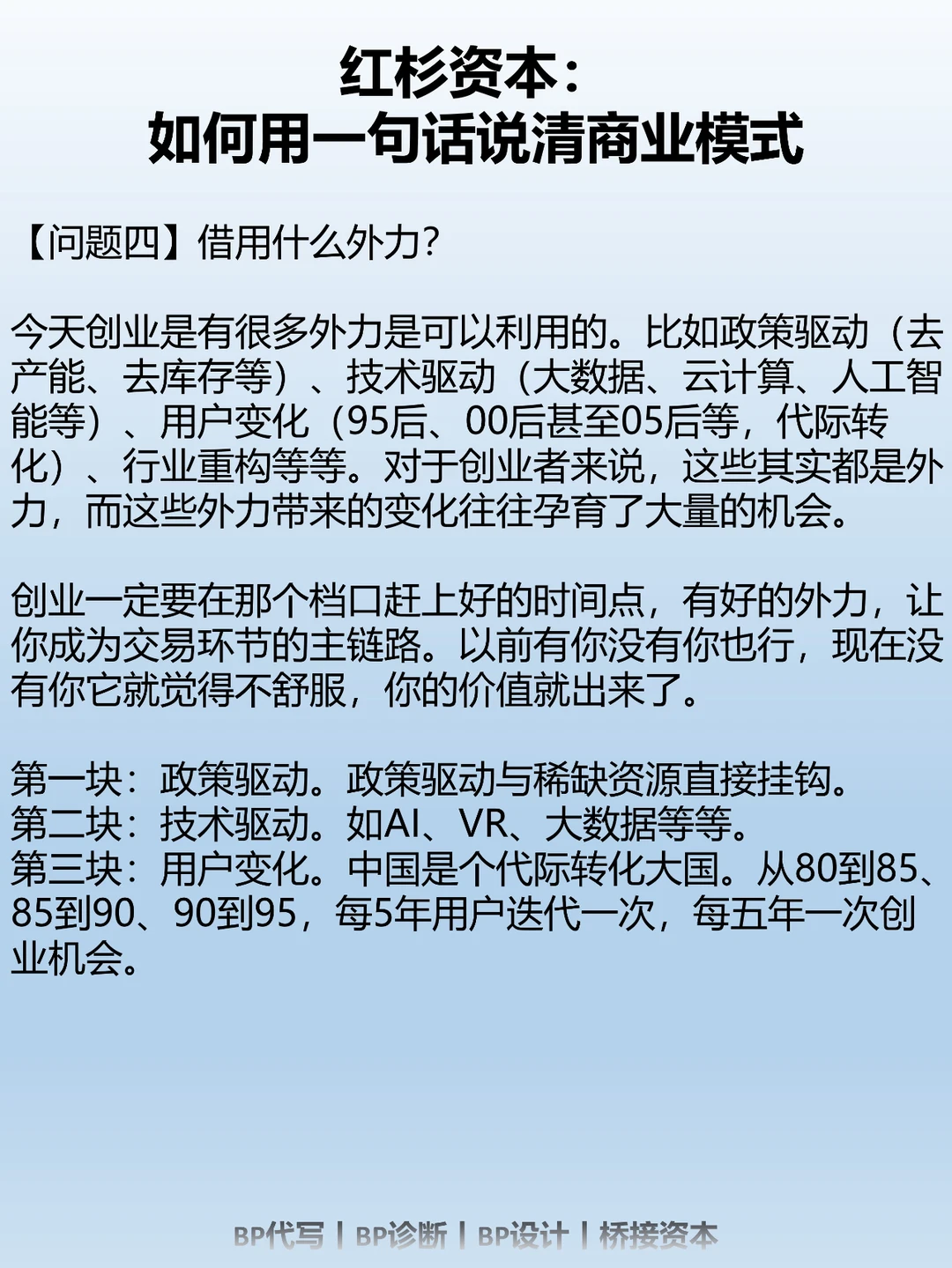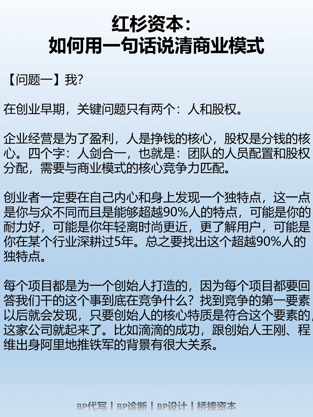 不管是我们在辅导创业者写BP也好,我们去看一个公司的年报也好。
