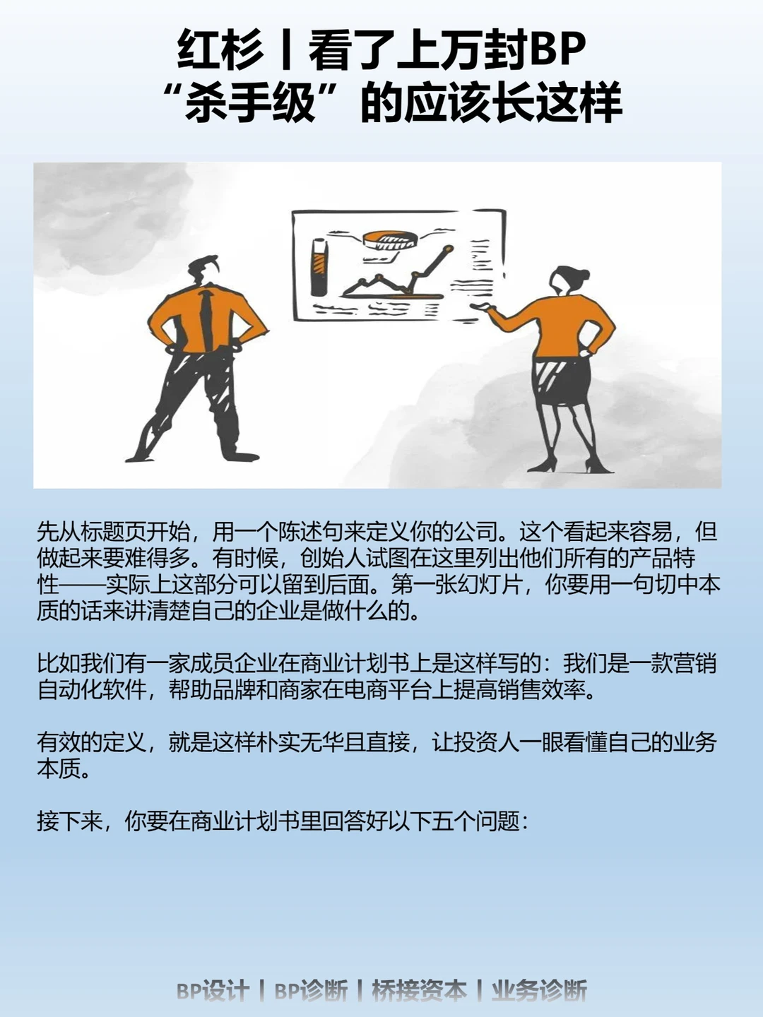 创业者和投资人的第一次连结,常常就由一封BP(商业计划书)完成的。BP是一家初创企业给投资机构留下的第一印象,特别是对于那些第一次创业的创始人来说,好的BP尤为重要。
