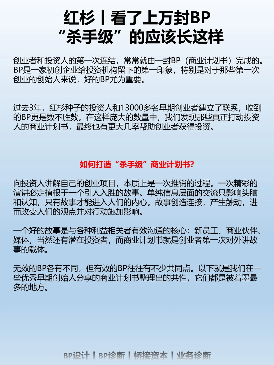 过去3年,红杉种子的投资人和13000多名早期创业者建立了联系,收到的BP更是数不胜数。在这样庞大的数量中,我们发现那些真正打动投资人的商业计划书,最终也有更大几率帮助创业者获得投资。
