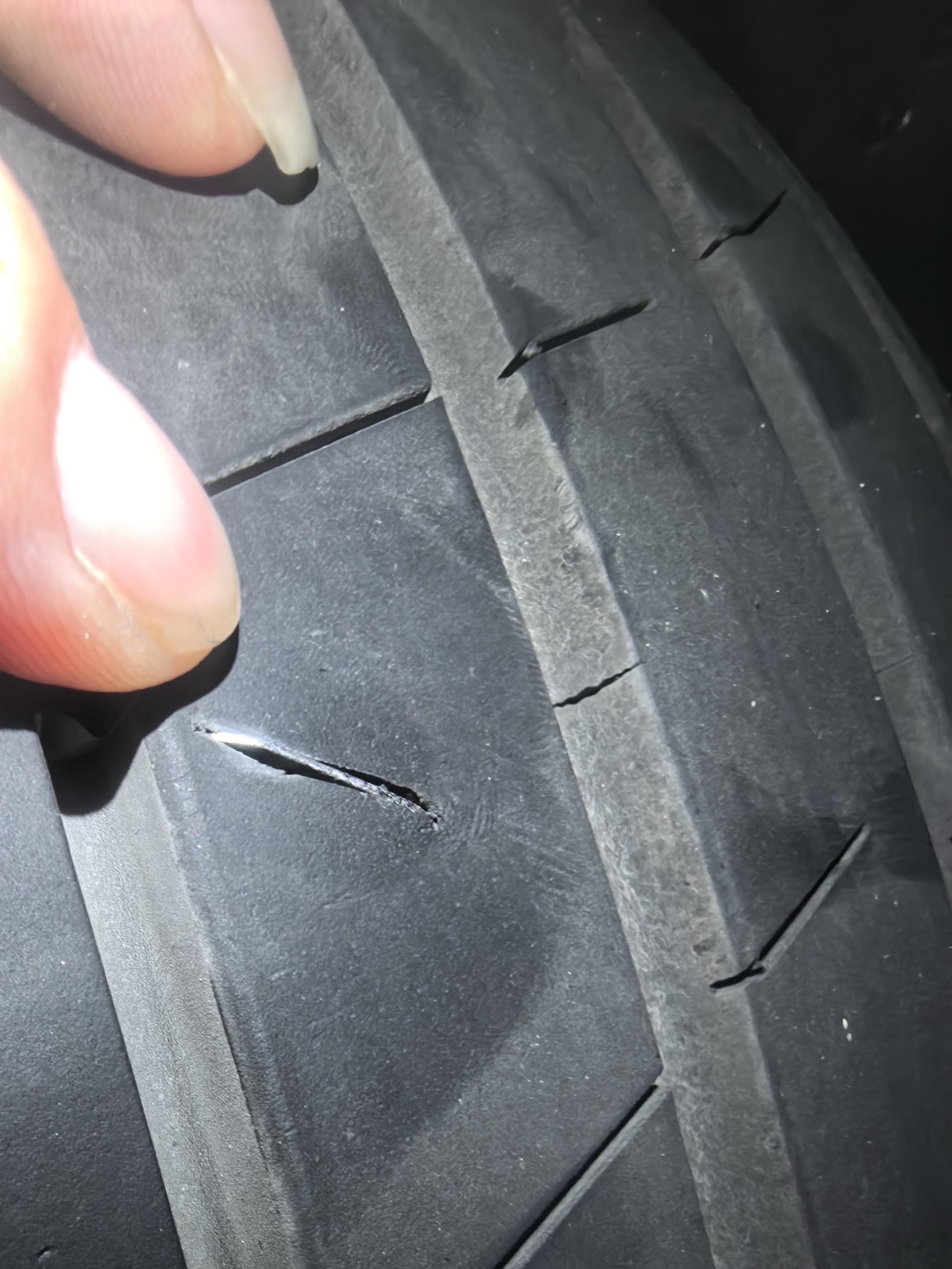 我看看谁的车扎钉有我的大,要不要换胎?