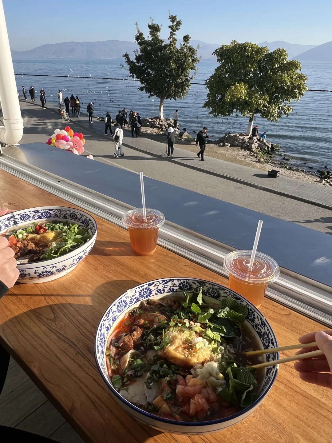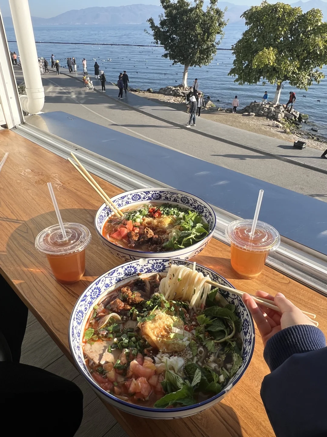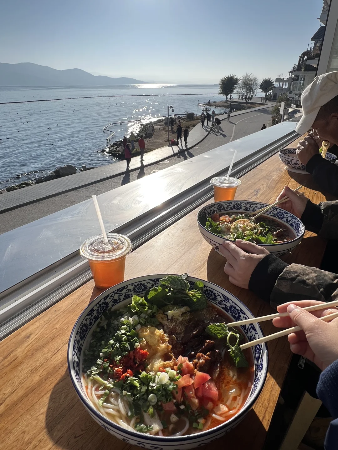 大理美食大理s湾大理旅游云南大理大理洱海洱海美食云南米线记录吧就现在 大理s湾!!!一碗米线才15r,分量很足,好多种小料,随便加!!!吃完,还可以坐在窗边放空发呆、拍拍照。星星掉进洱海里
