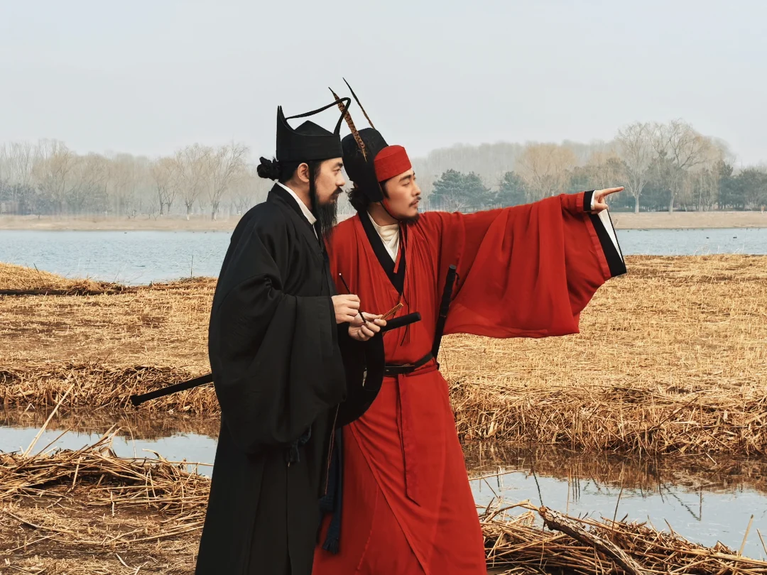 快看!对岸有群人在唱歌击筑…